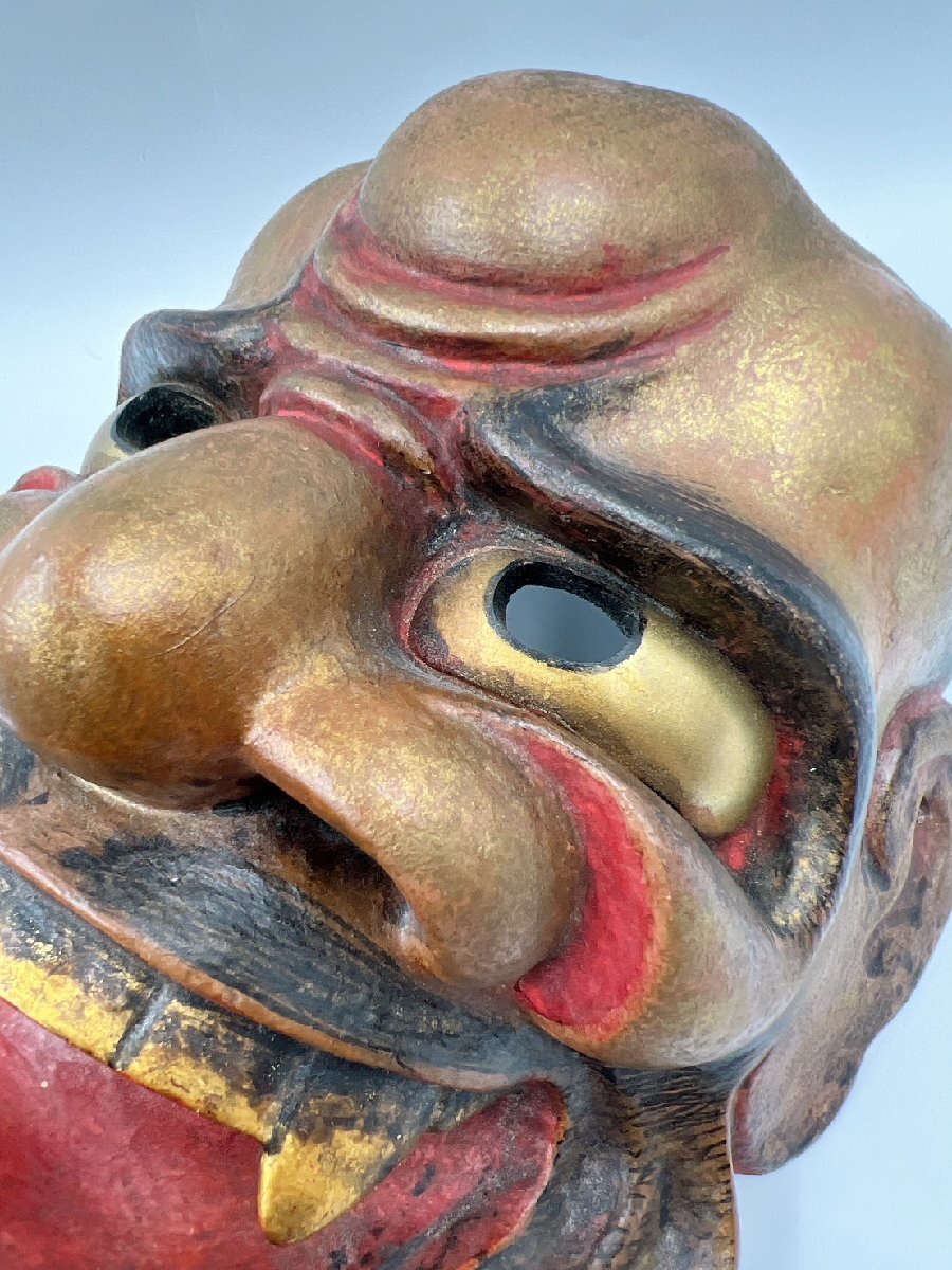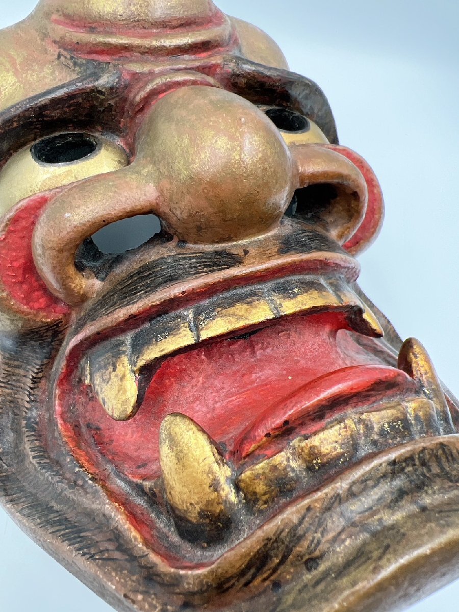 邪悪、悪霊、汚れ、邪心等を追い払う怒りの表情をしている面。