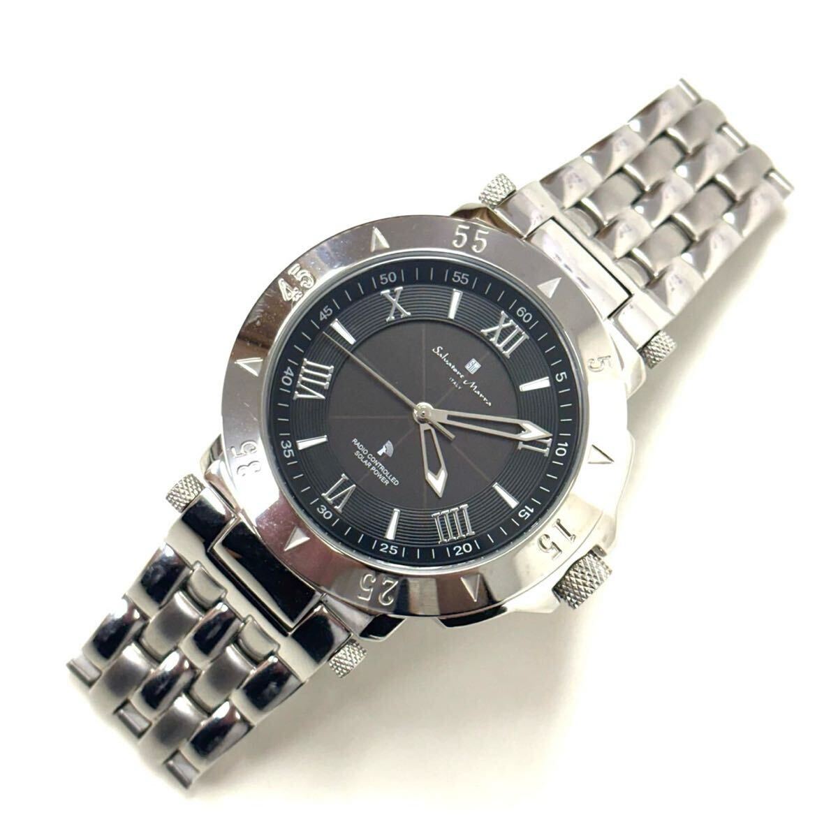 ★ 1円スタート!! 極美品!! ★ Salvatore Marra サルバトーレマーラ クオーツ 腕時計 電波ソーラー SM18112 ブラック文字盤 稼動品