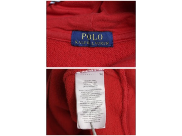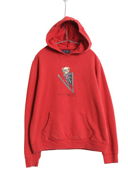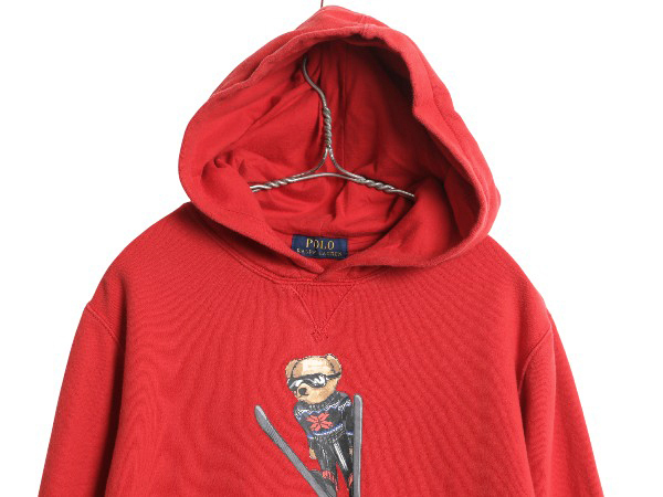 商品名 | ポロベア ポロ ラルフローレン プリント スウェット フード パーカー メンズ レディース S 程 トレーナー 裏起毛 前V キャラクター レッド |
