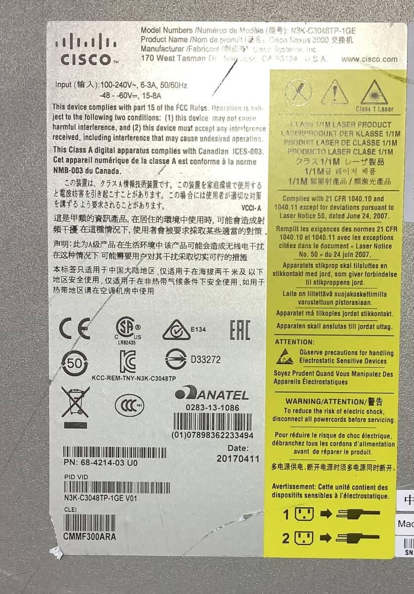 商品名Cisco N3K-C3048TP-1GE V01