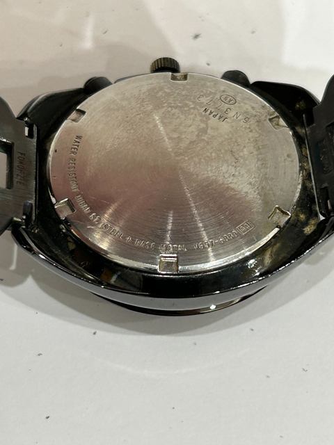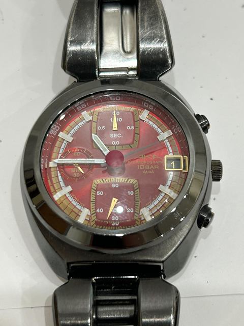 ■H103523:SEIKO セイコー ALBA アルバ AKA アカ V657-6030 レッド文字盤 デイト クロノグラフ 10BAR アナログ QZ 腕時計 不動 ジャンク