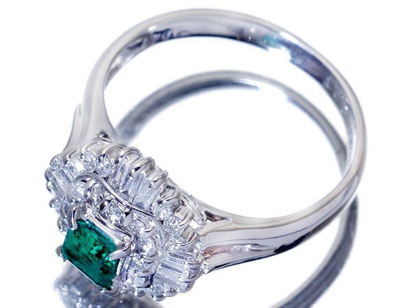 鮮やかなエメラルドグリーン煌く良質天然エメラルド0.28ct&ダイヤモンド総計0.47ctを素敵に宝飾した、高級Pt900リングを1円から特別大放出致します!