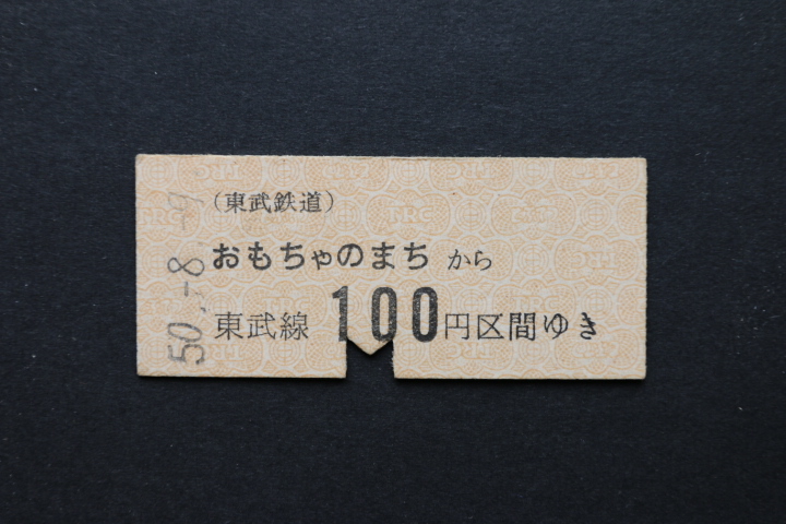 東武鉄道 乗車券 おもちゃのまちから 100円区間ゆき