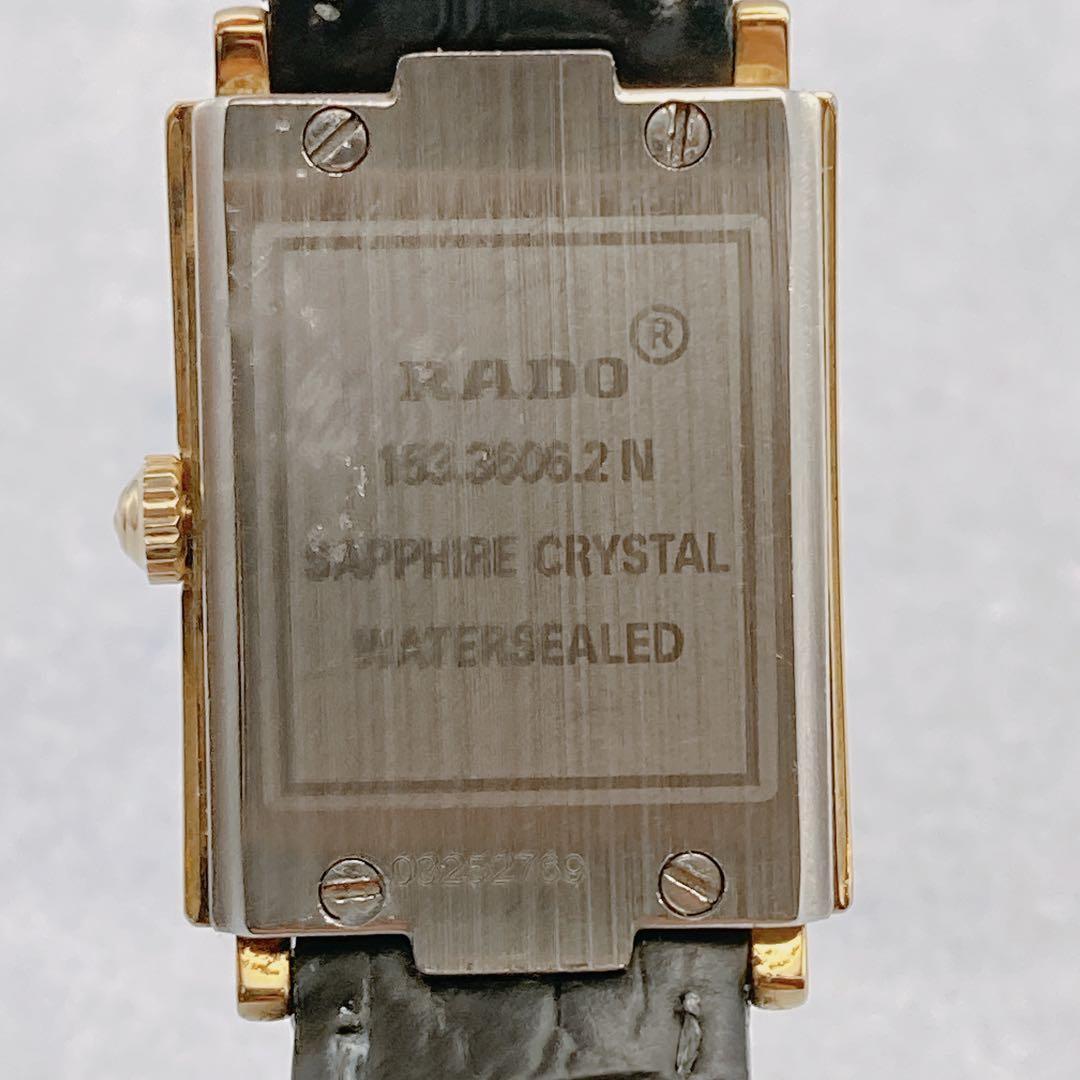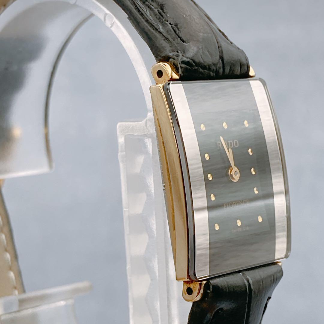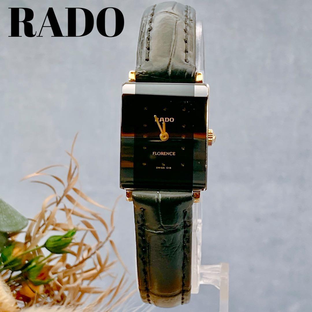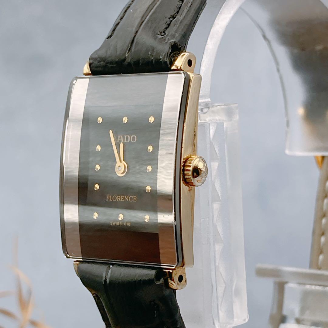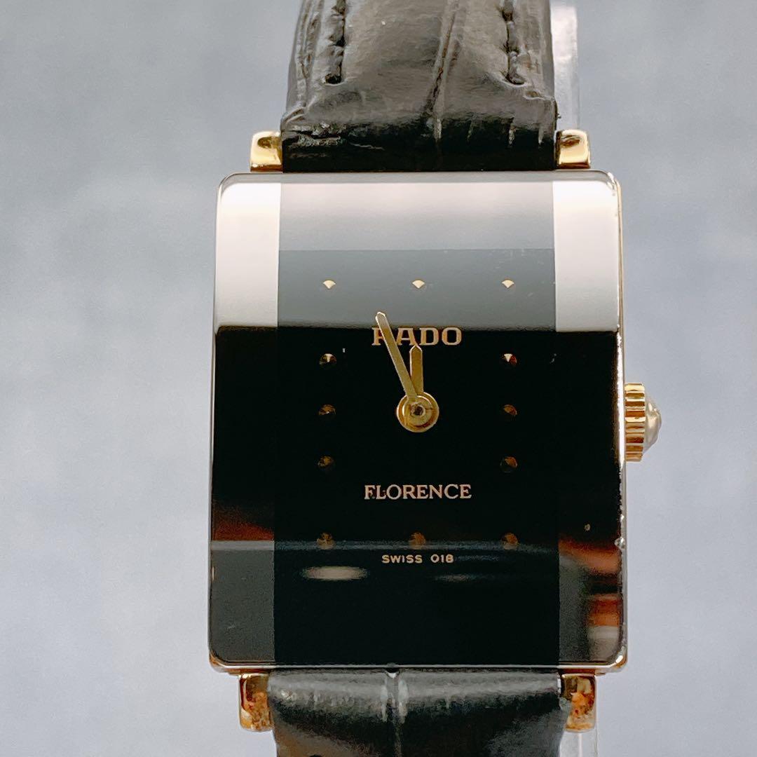 シンプルでエレガントなデザインのRADO FLORENCE腕時計、レザー製ベルトとスクエアケースが特徴。