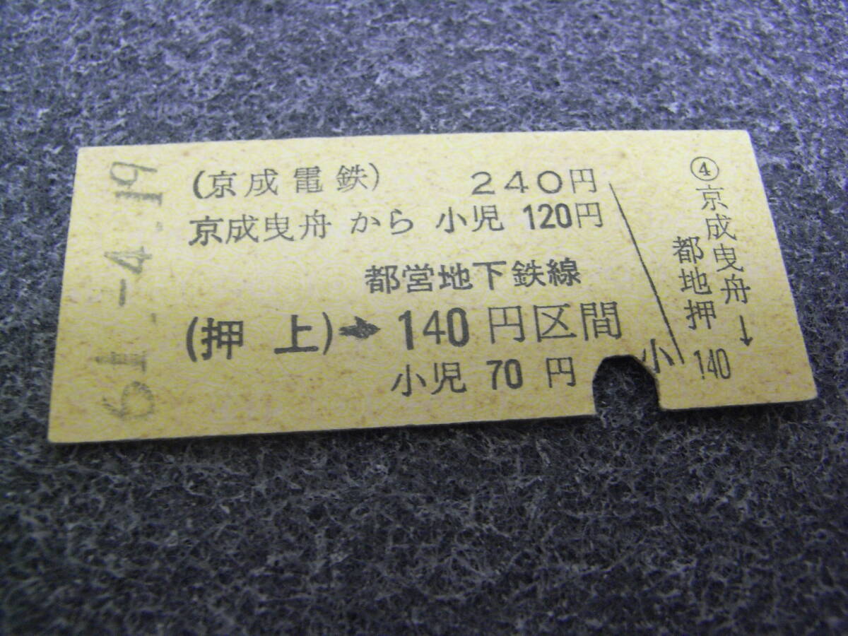 京成電鉄都営地下鉄連絡乗車券 京成曳舟から(押上)→都営地下鉄線140円区間 昭和61年4月19日 京成曳舟駅発行