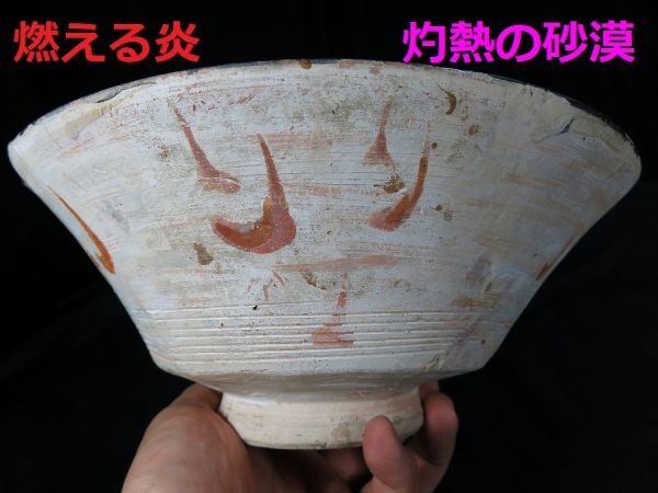 e 白地多彩四魚文字紋鉢 15世紀 遺跡発掘品 アフガニスタン 陶器/ 副葬品 墳墓 シルクロード 明器 埋蔵文化財 素焼き 磁州窯