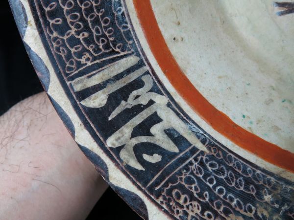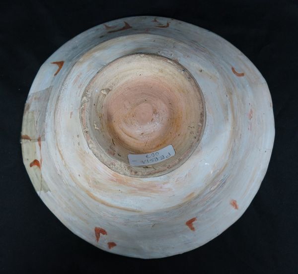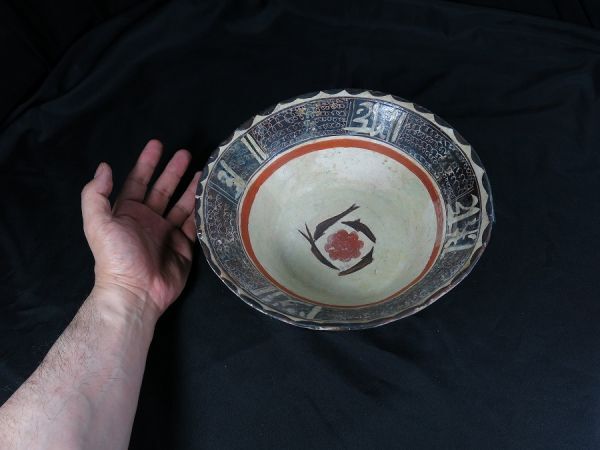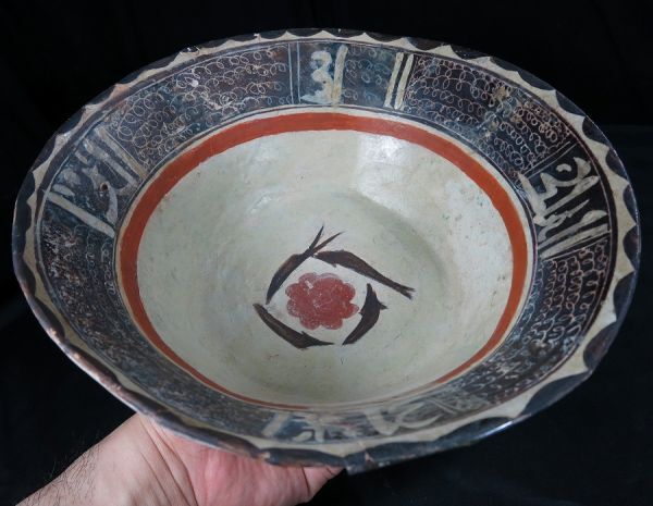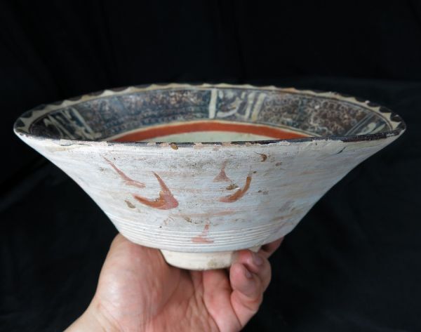 白地多彩四魚文字紋鉢 15世紀 遺跡発掘品 アフガニスタン 陶器 です。     コレクション整理での 出品です。