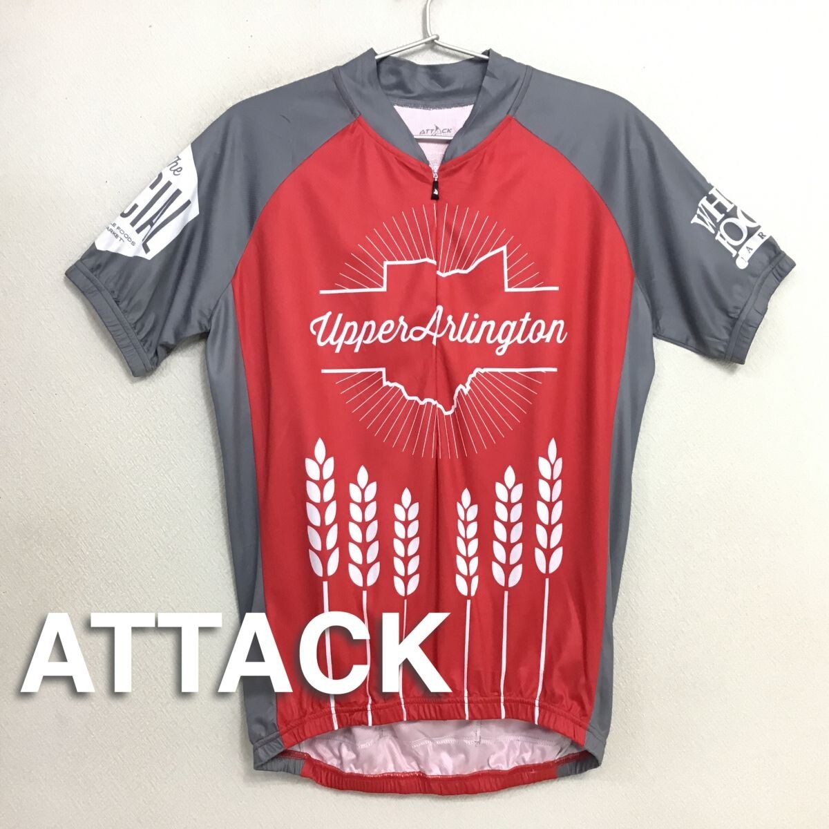★USA直輸入!!★海外モデル★良品★【ATTACK アタック】赤×グレー ハーフジップ 半袖 サイクルジャージ【S】自転車 ロードバイク K2-556