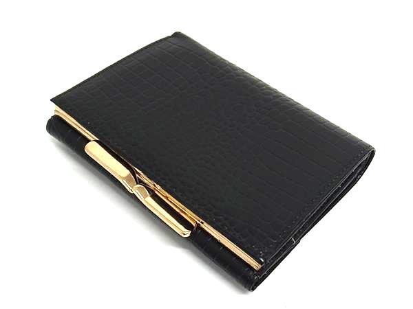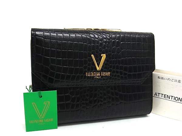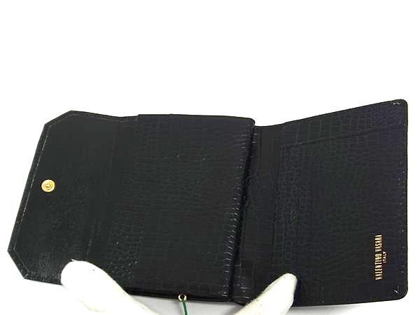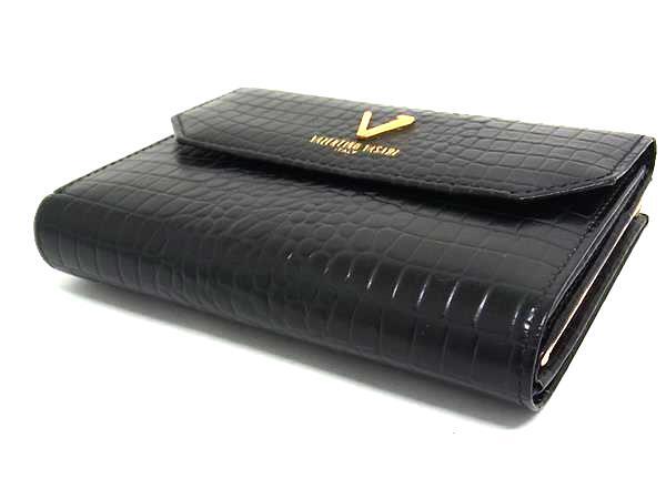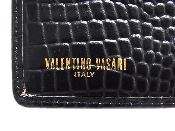 ■美品■ VALENTINO VASARI ヴァレンティノ ヴァサリ クロコダイル型押しレザー 三つ折り 財布 ウォレット ブラック系 DI2654