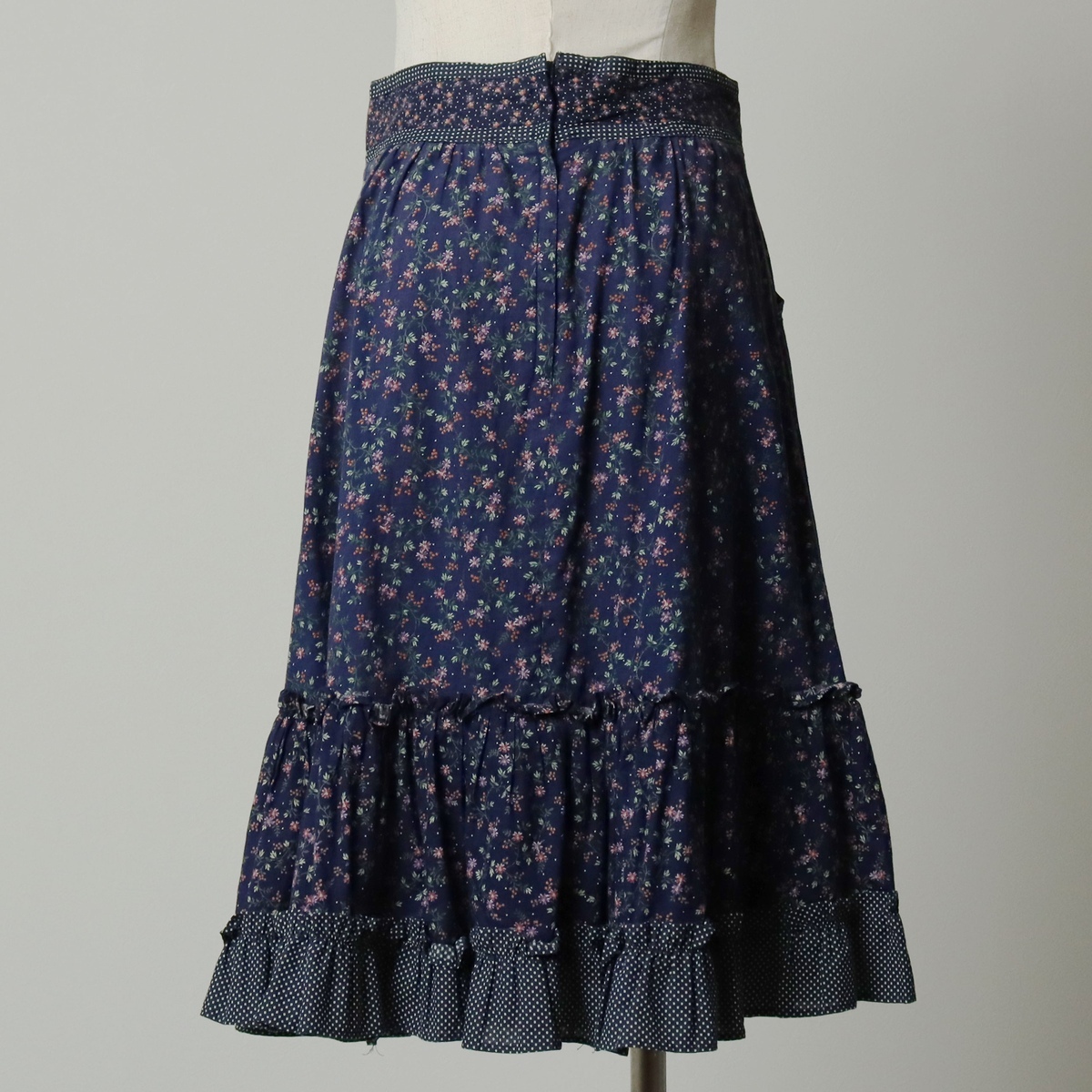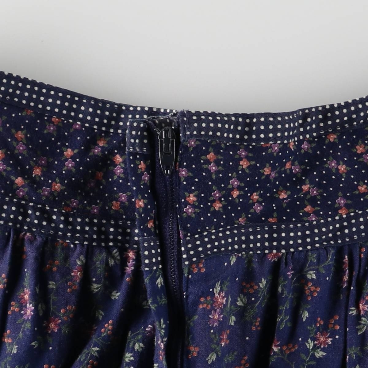 商品名: 古着 70年代 ガンネサックス GUNNE SAX GUNNIES ガニーズ ドット柄 ボタニカル柄 フリル付き 総柄 コットン ハーフ丈 フレアスカート USA製 レディースM相当 ヴィンテージ /evb031117 【中古】 【250912】 【V2509】 ブランド: GUNNE SAX ガンネサックス 特徴: ジッパーフライ / ヴィンテージ / フリル付き / ロケットタロン モデル/形状: GUNNIES ガニーズ / コットン ハーフ丈 フレアスカート 素材: コットン:100% 色: ネイビー系 紺色 / マルチカラー 柄: ドット柄 / ボタニカル柄 / 総柄 生産国: USA製 年代: 70年代 カテゴリ: レディース スカート ハーフ丈スカート 商品番号: evb031117 コメント:70年代ガンネサックスらしい、落ち着いたネイビーの地に可憐なボタニカル柄が広がり、ウエスト周りと裾のフリルにはドット柄の生地を組み合わせるという、ブランドならではの巧みなデザインが光ります。ヴィンテージならではの特別なスカートです。 | |