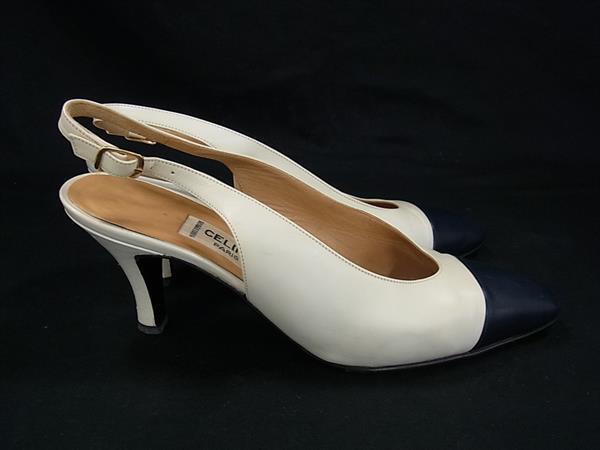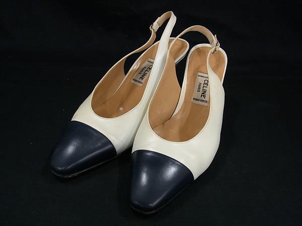 CELINE セリーヌ レザー ヒール パンプス 表記サイズ 35 1/2 (約22.5cm) 靴 シューズ レディース アイボリー系×ブラック系 DI3227