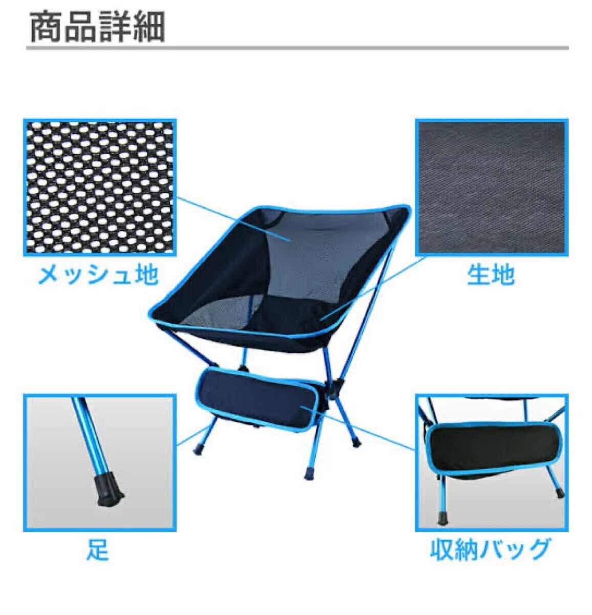 アウトドア用チェア 椅子 アルミ合金&オックスフォード製 メッシュネット有 キャンプ 釣り 登山 ピクニック 超軽量 収納袋付き コンパクト