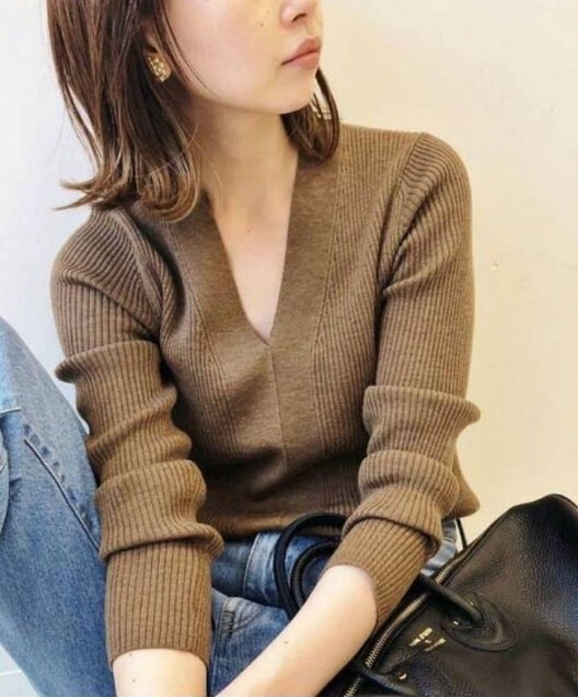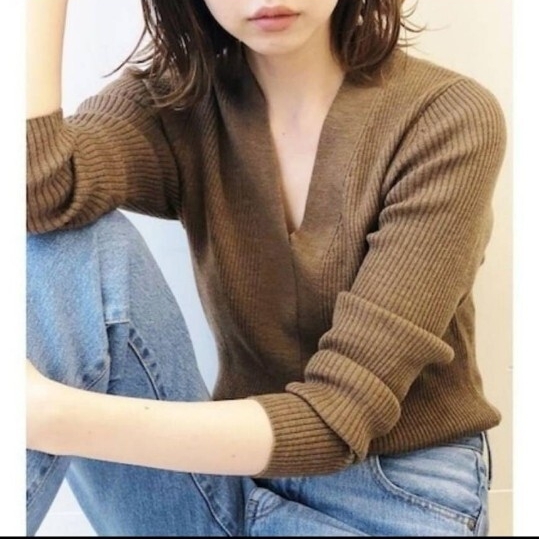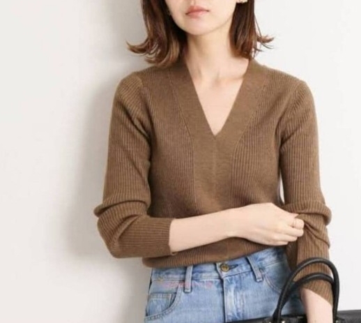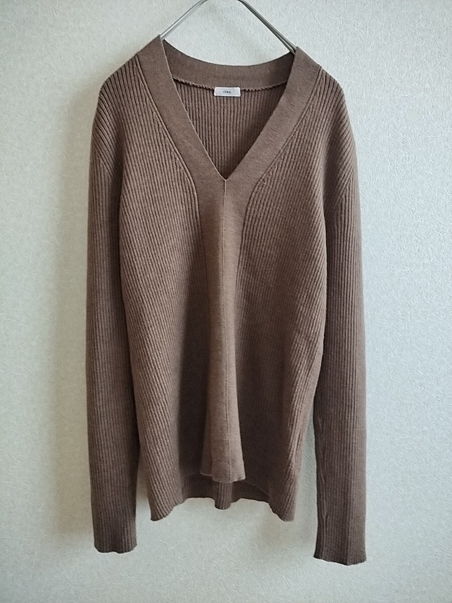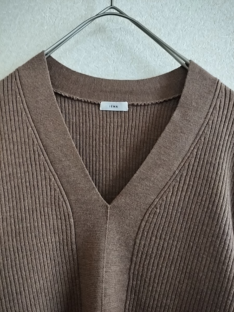 IENA/極美品/3x3リブVネックプルオーバーニット キャメルブラウン