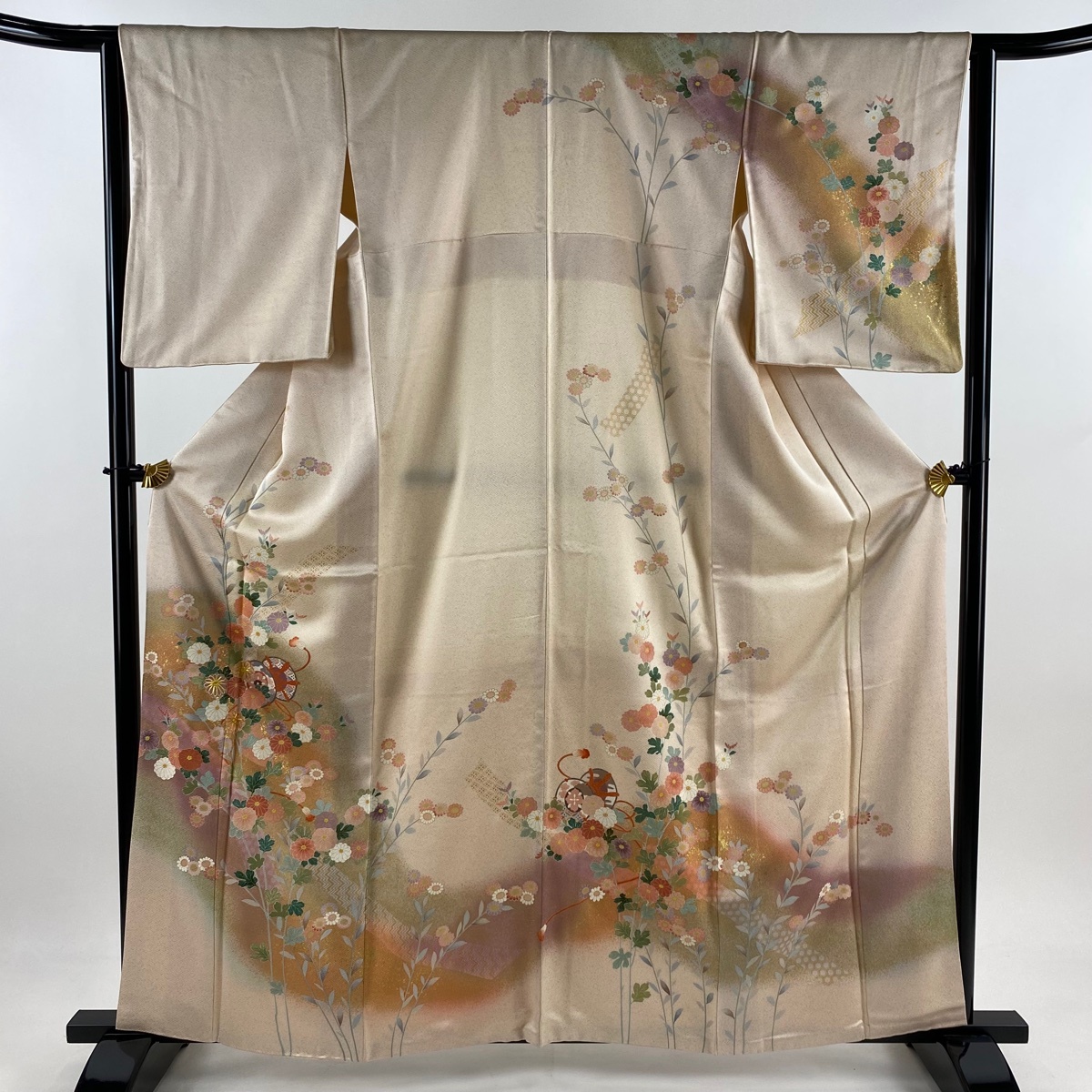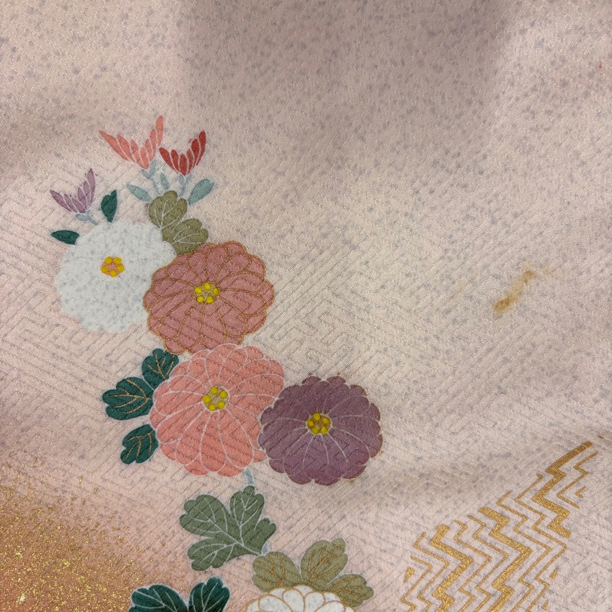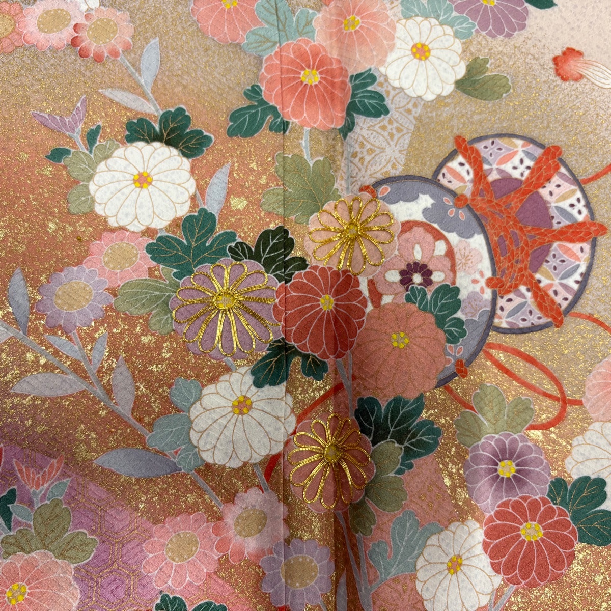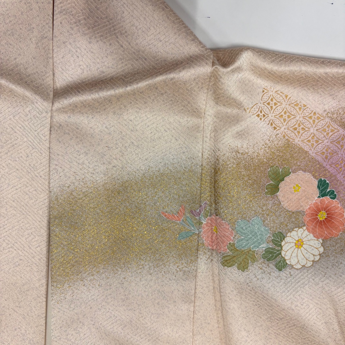| 訪問着 秀品 鼓 菊 金糸 金彩 薄ピンク 袷 身丈162.5 裄丈63 S 正絹 【中古】 |
