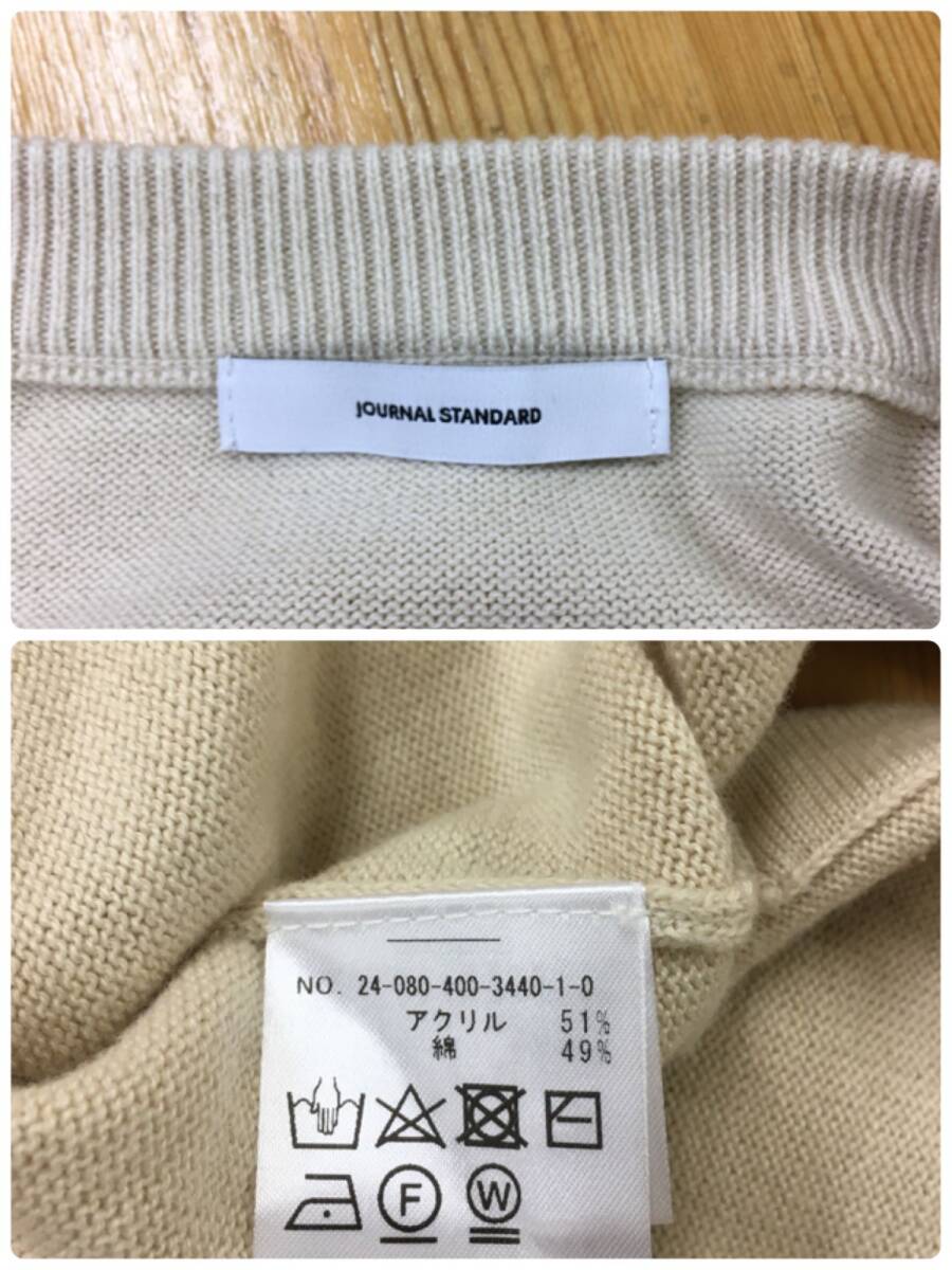 2K3393-G◆ JOURNAL STANDARD ジャーナルスタンダード ロゴニットプルオーバー リブクルーネック 袖ライン ◆ アイボリー 綿 アクリル