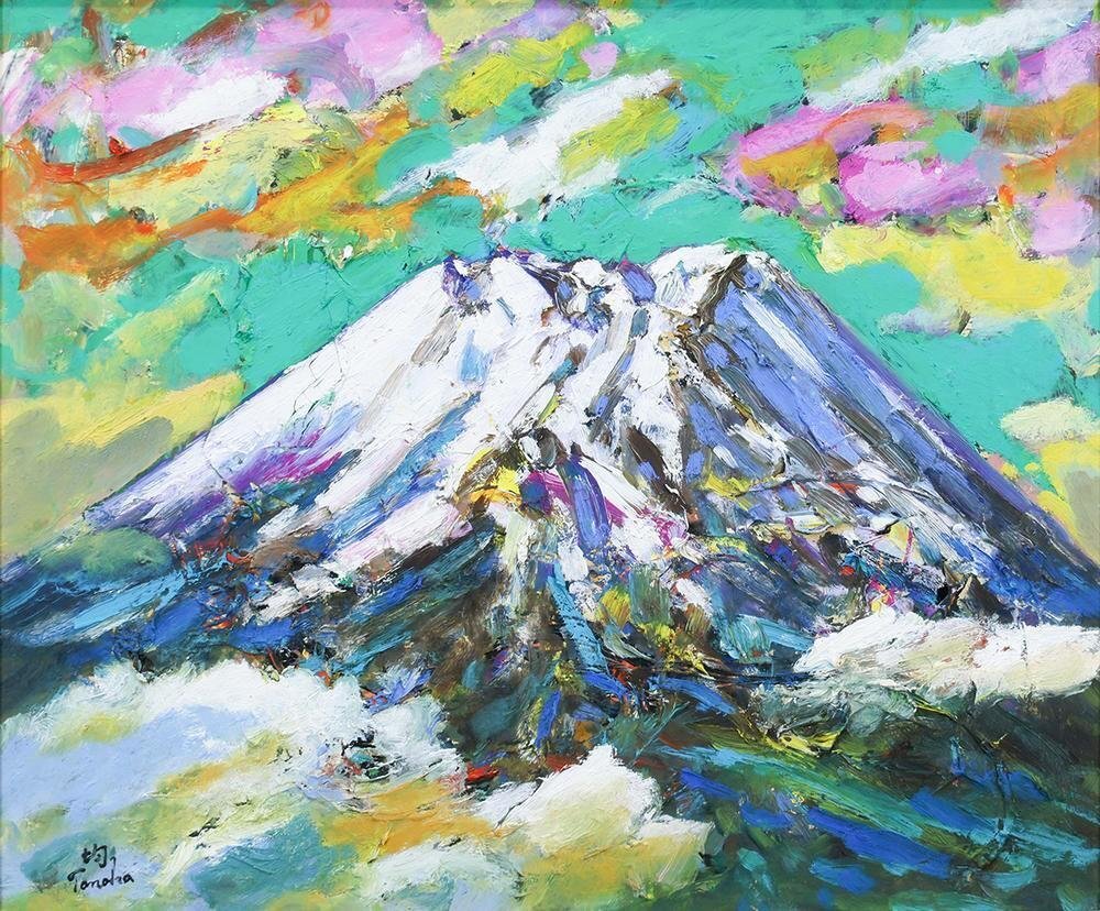 【真作】【WISH】田中仁士(田中均)「富士」油彩 8号 ◆彩雲に輝く峰   〇睡蓮の画家 国際美術協会会員 元新協会会友 #25093042