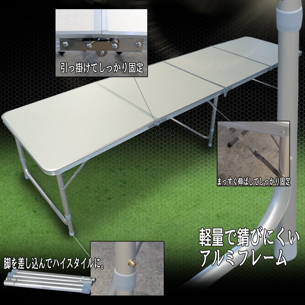 かんたん組立の折りたたみアウトドアテーブルです。 サビに強いアルミを使用! 高さは「ハイスタイル」「ロースタイル」の3段階調節。 ■商品仕様■ |