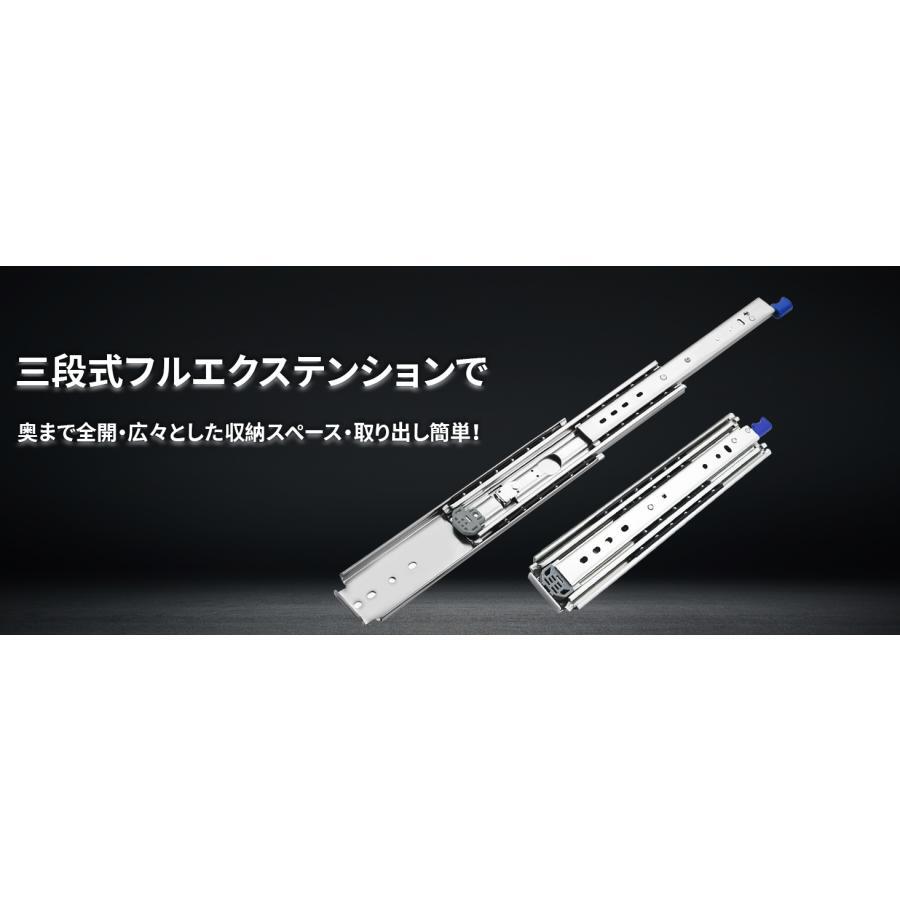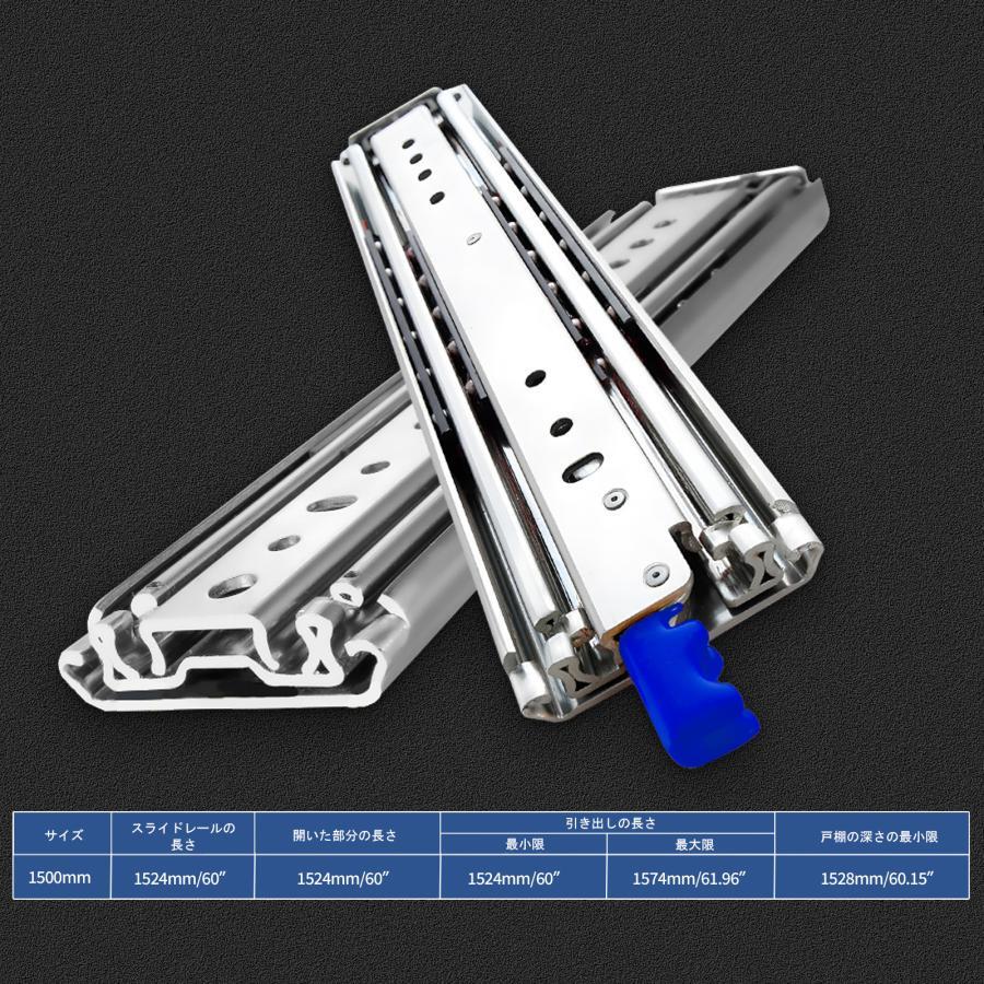 スライドレール 重量用 3段フル伸縮ロック式 引き出し レール(底引き対応)|幅76mm×長1500mm|5万回耐久 工業用レール 左右1セット