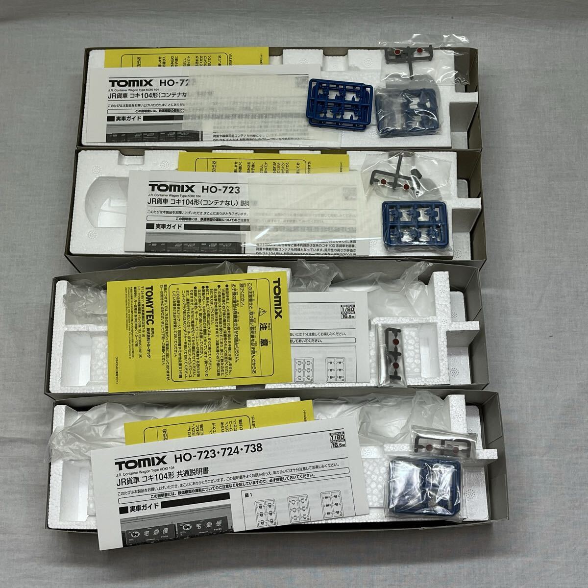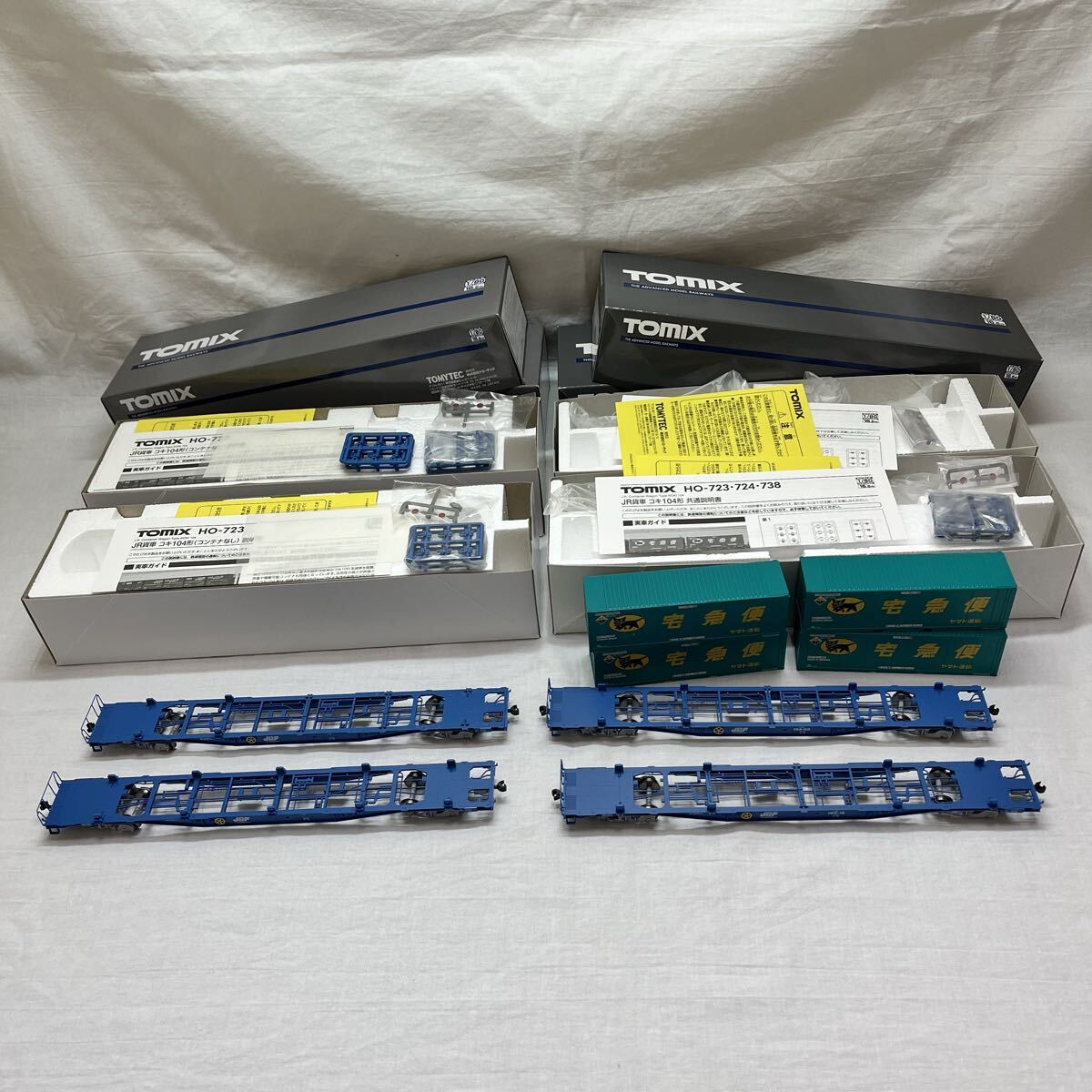 TOMIX★HO-738(ヤマト運輸コンテナ付)2個 HO-723(コンテナなし)2個 コキ104型 4個セット 中古②