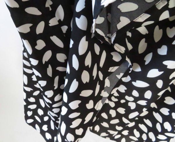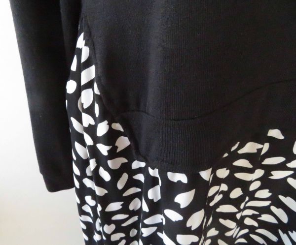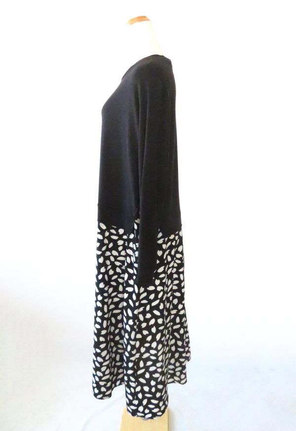 詳細 | 中手の織り機械編み伸縮地です。気持ちのいい肌触りのさらりとしたソフトで上質感がある機械編み伸縮黒無地に柄地です。素敵な切り替えラインデザインを入れてふっくらと無理のない着心地でおしゃれなムードが出せるワンピースドレスです。 状態は綺麗なものです。 |