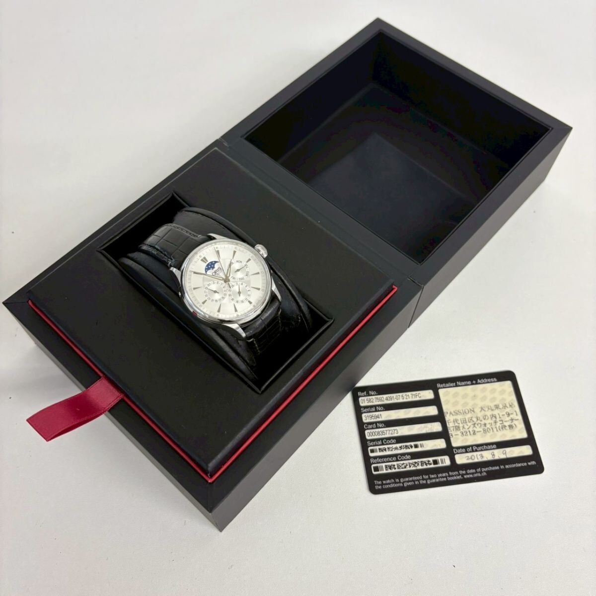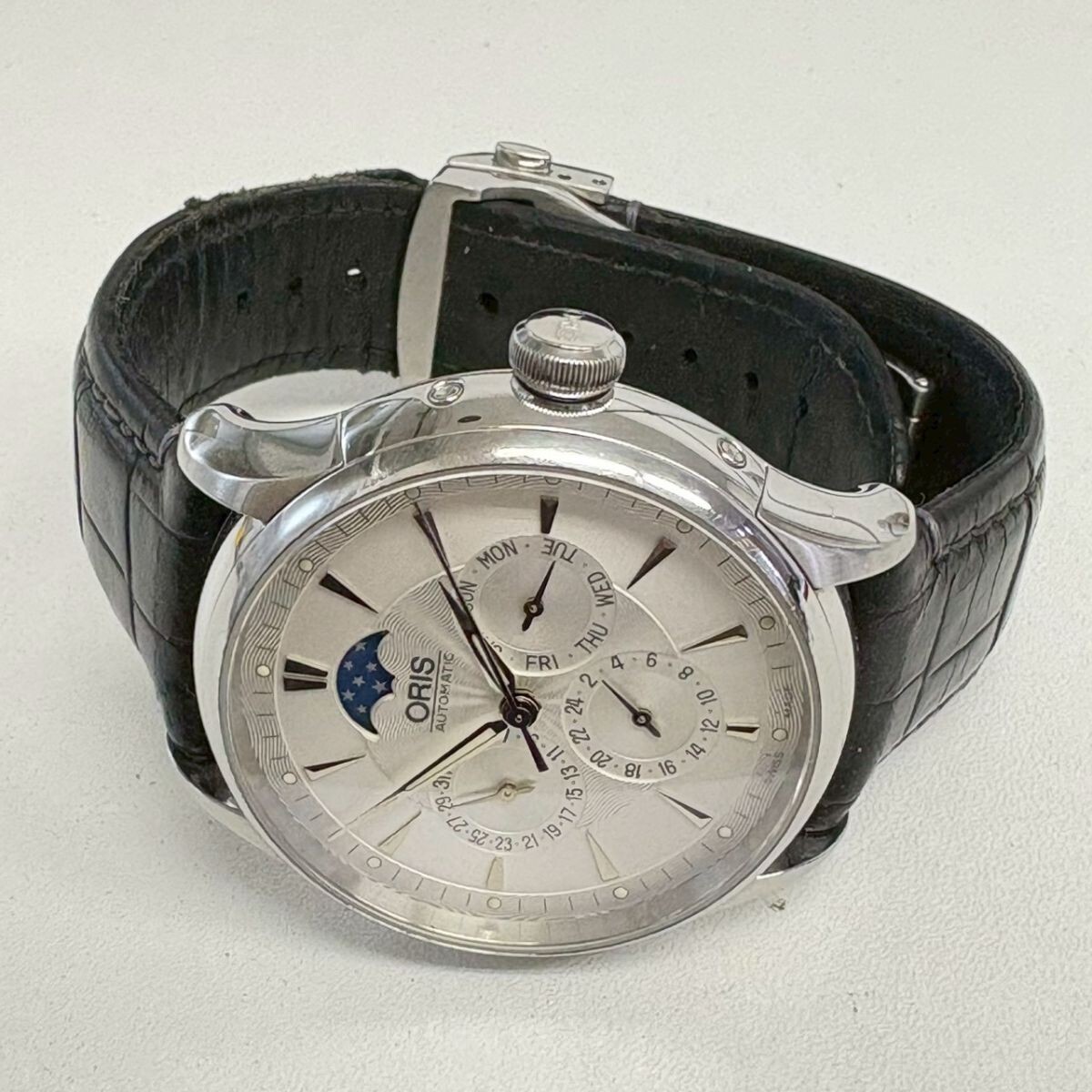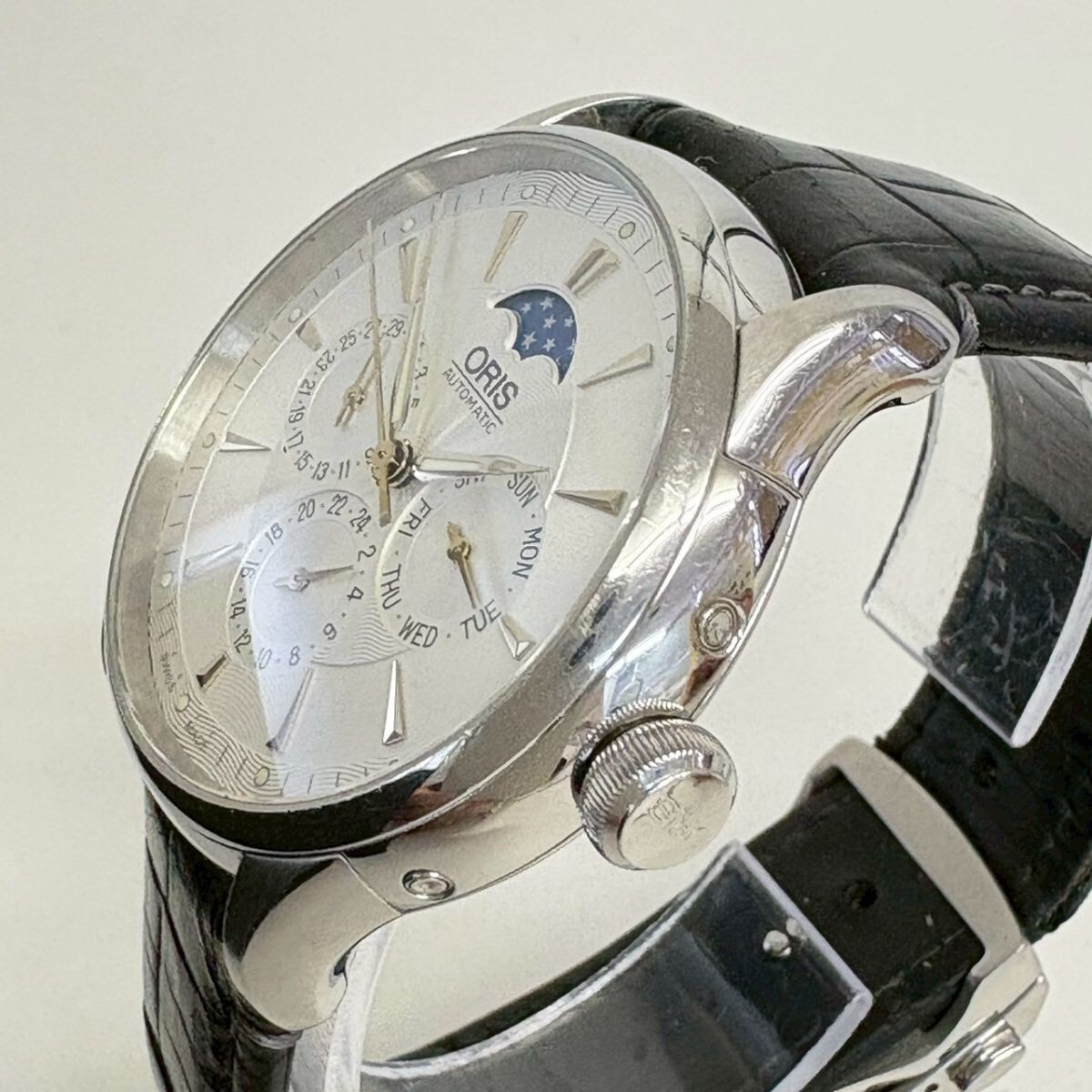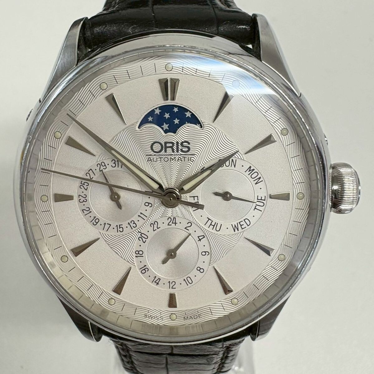 取り扱っている商品は未使用・未開封も含め、全て一度は人の手に渡った一点ものの中古・ジャンク扱いでの商品です。 当方素人ですので肉眼で確認できる簡易的な検品、採寸、および簡易梱包となります。 ※稼働の記載につきましては秒針等の確認のみとなり、全体の動作を保証するものではございません。 また、出品時の中古品の動作状況となりますので、予めご了承の上でご入札ください。 不動の表記につきましてはクォーツ式のムーブメントの場合、動作未確認の状態となります。 電池交換後、不具合があった場合でも返金、返品の対象とはなりませんので、予めご了承くださいますようお願い致します。 細かな日差、オーバーホール状況、社外パーツの使用に関しては保証しかねますので、ご理解いただけた上でのご入札をお願い致します。 上記を踏まえた上で中古品、ジャンク商品として出品させていただいておりますので、全てご理解いただけた上でのご入札をお願いいたします ------------------------------------------------------------------------- 【メーカー】 ORIS 【モデル名】 アートリエコンプリケーション 【型番】 7592 【シリアル】 31-95941 【サイズ】 直径約4.3cm 腕回り約17cm 【付属品】 画像参照 【稼働状態】 稼働 【その他状態】 リューズ動作 時間:OK 日付:OK 曜日:OK ------------------------------------------------------------------------- 画像にあるものが全てです。 他詳細は画像にてご判断ください。 ※目立つ傷や汚れを中心に写真を撮っておりますが、画像に写りきっていない傷等がある場合もございます。予めご了承ください。 ※商品を多数出品している関係で、稀に商品説明や画像に誤りがある場合がございます。予めご了承ください。 こちらのページをご覧いただく際は、商品説明文と掲載している画像の全てを確認いただいた上でご入札ください。 | |||||||