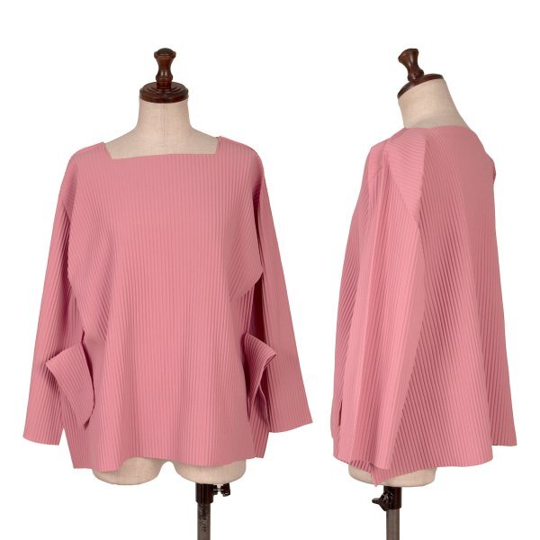 イッセイミヤケミーISSEY MIYAKE me ファインニットプリーツサイドカッティングデザインカットソー ピンクF |