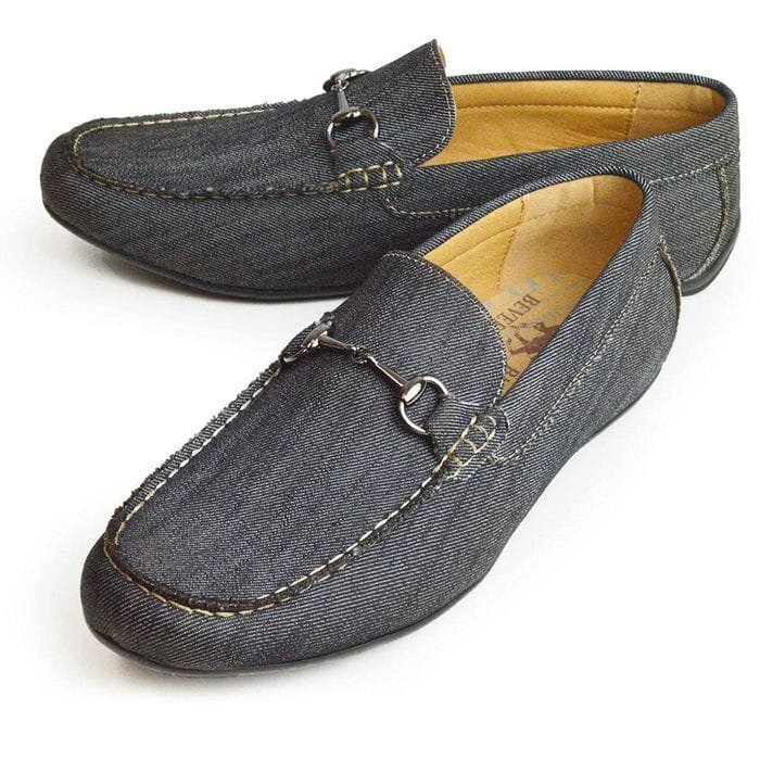 ドライビングシューズ 防滑 メンズ スリッポン ローファー 素足 ドライブ 靴 ビット モカシン ステッチ デニム【エコ配送】 vbh601