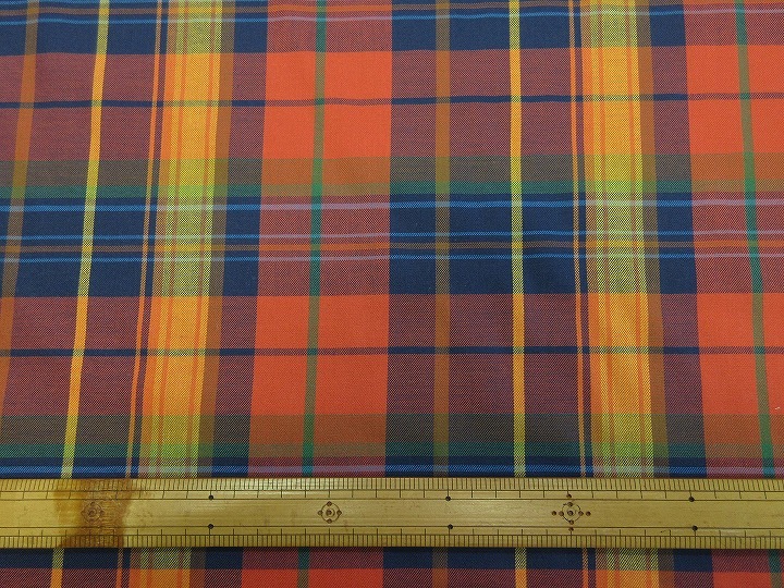 幅110cm×長4m 綿100%の生地です。 生地の色はカラフルで生地の厚さは薄地です。 生地の厚さは約0.23mm前後です。 生地の色はパソコンの色見本を参考にしました。 生地は格子柄で柔らかく肌触りの良い綿100の生地です。 生地の色にはパソコンの色見本を参考にしておりますが、パソコンのメーカー等によって色の違いがありますので、生地の色はご参考とお考えください。 この生地の伸縮性はありません。 ワンピース、パンツ、スカートなどにいかがでしょうか。 色柄は写真をご覧ください。 生地は保管期間が長い為、あたり(生地の毛がねてる)やキズがある場合があります。 この生地は他の生地等と保管していた為、糸クズ等が付いている場合ごさいますのでご了承ください。 生地の色は基本的にパソコンの色見本を参考にしておりますので、多少表現の違いがあります。 生地の厚さなど個人差がございますので、あくまでも参考としてお考え下さい。 生地の色、生地の厚さ等、ご質問を頂ければ、出来るだけ詳しくお答え致します。 素人裁断の為、裁断面が多少斜めにカットされていますのでご了承下さい。 素人裁断・素人保管です。 商品の管理には十分注意しておりますが、縫製工場からの処分品の為、キズ・糸ずれ・汚れ等がある場合がございますのでご了承の上、ご入札頂ければ幸いです。当方の生地は、基本的に縫製工場からの処分品が多い為、品質表示等の欠損があり混紡率が解らない時があります。その時は燃焼テストを繰り返し、当方で判断する場合がございますのでご了承下さい。 |