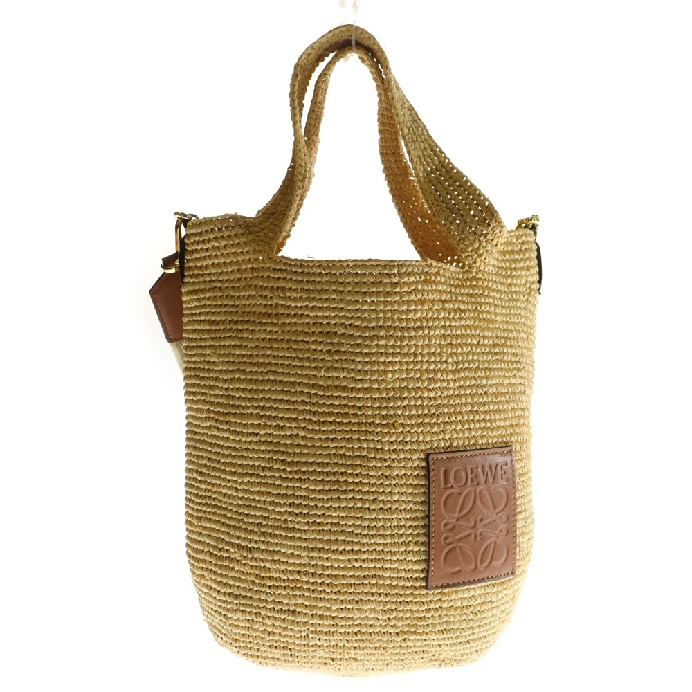 ロエベ アナグラム スリットバッグ ミニ インナチュラル 2WAY ラフィアハンドバッグ ショルダーバッグ ベージュ レディース A685453X07