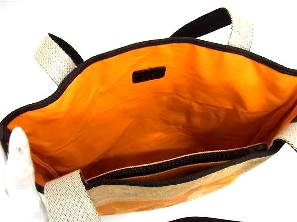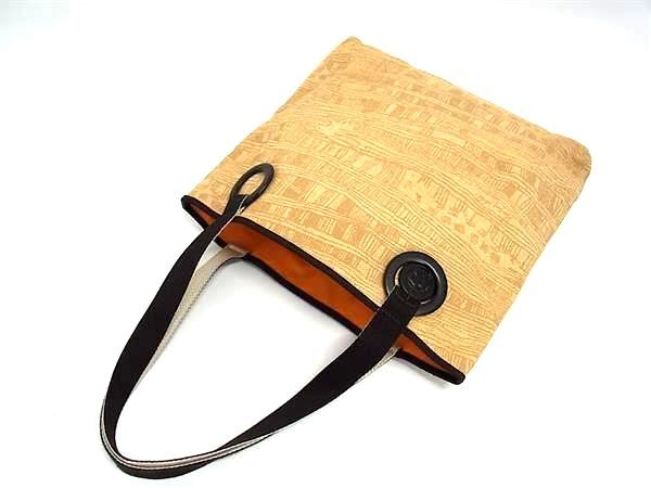 1円 HUNTING WORLD ハンティングワールド キャンバス トートバッグ ショルダーバッグ 肩掛け ベージュ系×ブラウン系 BQ1437