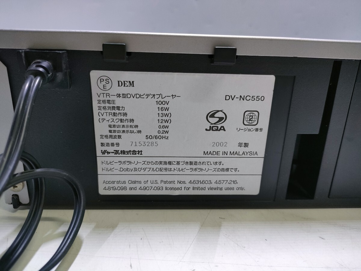 き-68(通電、再生確認 、中古現状、即発送)シャープ VHS/DVD Hi-Fiビデオデッキ DV-NC550