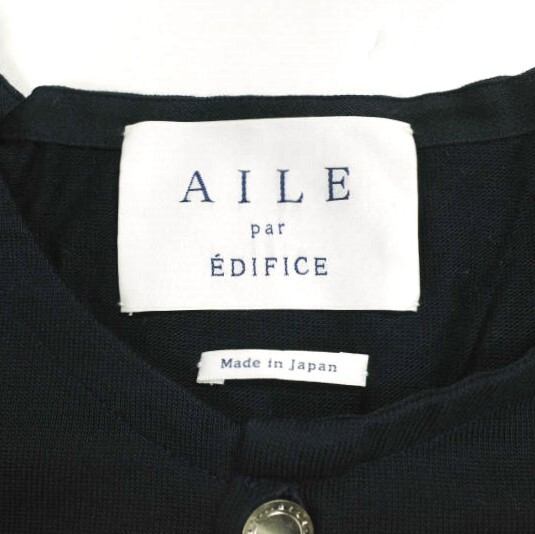 AILE par EDIFICE エル パー エディフィス 日本製 ハイゲージコットン クルーネックカーディガン 17071300802510 42 NAVY ニット トップス
