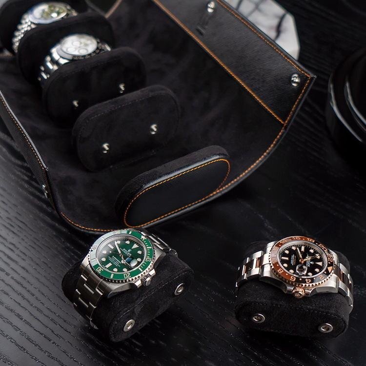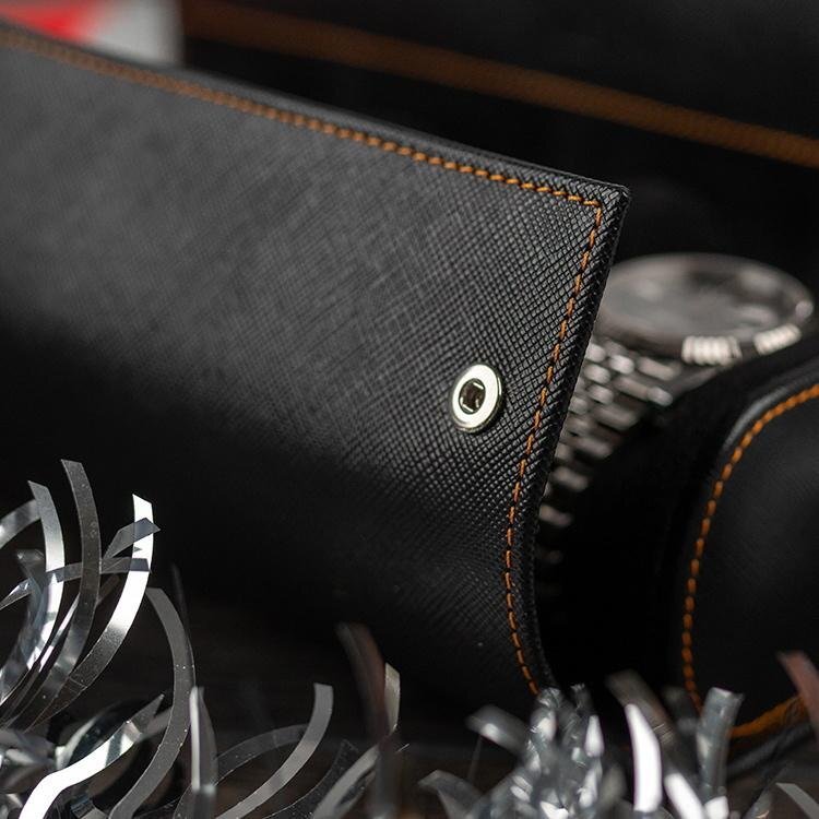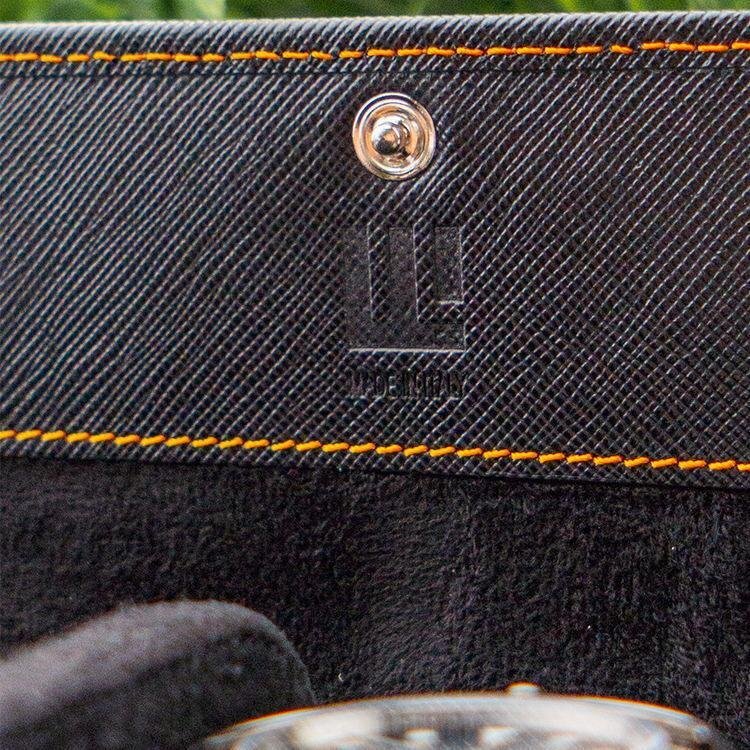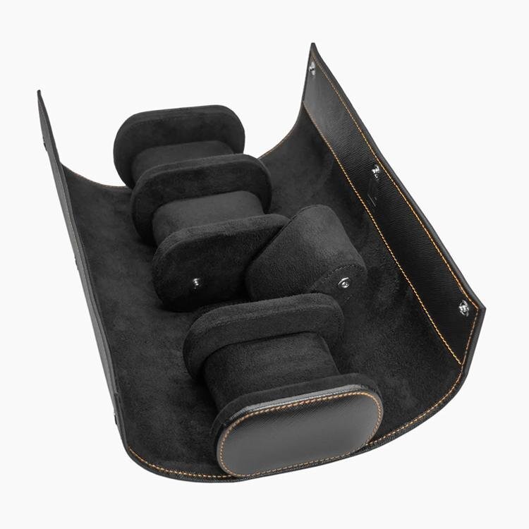 商品説明 | 【商品スペック】 IFLW ウォッチロール 4本用 Saffiano Black(ブラック) イタリアンサフィアーノレザーを使用した時計を収納・持ち運びできる本革時計ケース。 表面に施されたエンボス加工の陰影が上品な印象を与えます。 ひとつ一つ手作業で仕上げる品質。 全てのウォッチロールはイタリア製です。 仕事、プライベート用の使い分けをされる方に。持ち運ぶ際もコンパクトで便利にお使い頂けます。 インナーには上質なアルカンタラを贅沢に使用し、見た目・手触りとも高級感のある仕上がり。ラグジュアリーな時計にふさわしいケースは、開くたびにその満足感を味わえます。 ウォッチロールの開閉、ピロー部分の取り外しは便利なスナップボタン式。 サイズ詳細(単位:cm) 幅26.2 x 高さ9.7 x 奥行7.0 ピロー周囲 18.0 x 幅5.0 ※時計は商品に含まれておりません。 ※画像はイメージです。若干デザイン等が異なる場合がございますので、予めご了承ください。 | |
