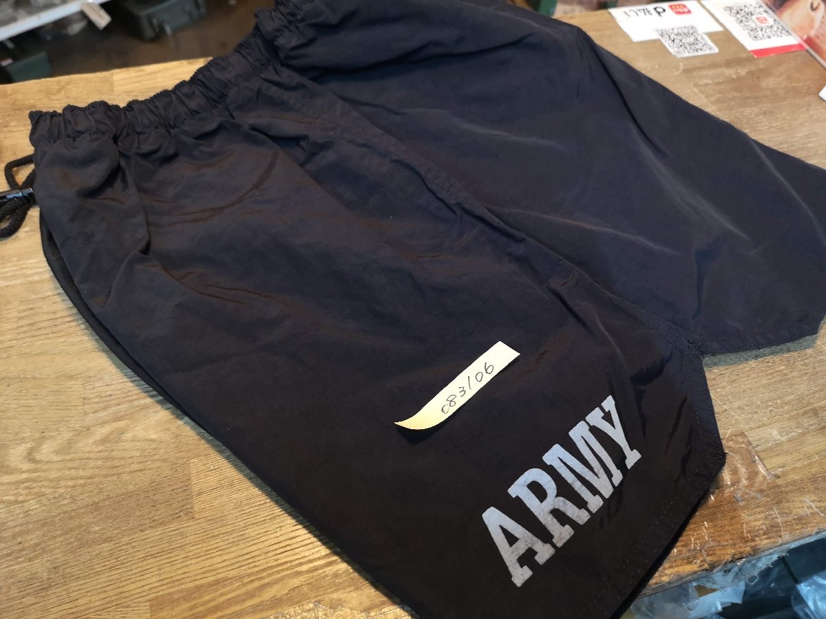USアーミー放出品の本物トレーニングジョグパンツ。素材はさらさらのナイロン、インナーにSUPPLEXのホールド入り。ARMYのプリントは夜も安心のリフレクター。 サイズLは全長44cm、股下13cm、ウエストが80から95センチ程度です。 ヤマトネコポス便にて全国200円でお送りいたします。落札価格にプラスでお願いします。