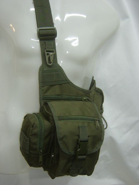 ミリタリーテーストなワンショルダーバック。サイズはメインがD7×H19×W16センチ程度です。 右側のサイドポケット大がD5×H15×W7センチ程度、 フロントポケットがD3.5×H16×W13センチ程度です。反対サイドには携帯サイズのミニポケットが上部に、下にはマグライト(単三サイズ)サイズです。ジッパーはフラップの根元とフラップに2個。K/Hリングも装備。 メインにはメッシュポケット2個、物が落っこちないようにドローストリング付き。人気のレッグポーチよりも微妙に大きなサイズで便利です。 沖縄離島をのぞく全国500円にて元払いいたします、落札価格にプラスでお願いいたします。