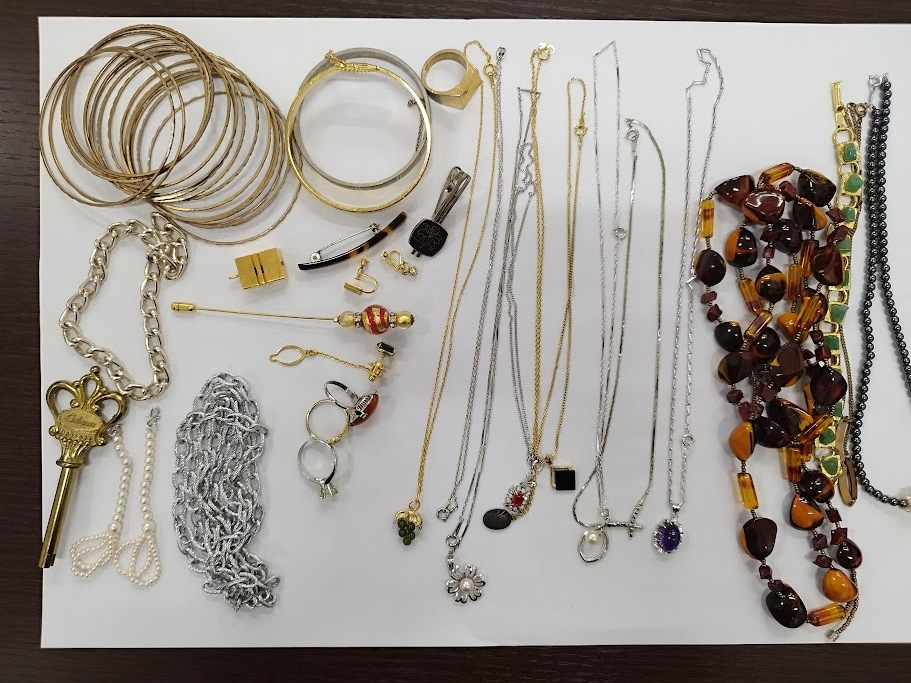 ご覧いただき誠にありがとうございます。 誠意をもって対応しますのでご安心ください。 ぜひ入札をお待ちしています。 タイトルの最初の数字は当方の管理番号です。 【商品】 『アクセサリー おまとめ 中古品 ジャンク品 』 中古アクセサリー色々です。 ネックレスが多めです。ジャンク品になりますのでご理解いただける方のご購入をお待ちいたしております。 ※付属品は写真に映っているものが全てです。 専門的な質問にはお答え致しかねますので ご了承いただける方のみご入札お願い致します。 神経質な方はご遠慮くださいませ。 また請求書・領収書の発行は行っていませんのでご了承ください。 落札後のクレーム・返品・質問は一切受け付けておりません。 質問がある場合は【事前に・落札前に】お願いいたします。 送料に関しては記載させていただいているものに 限ります。 ※変更・例外は御座いません。 落札した後に『○○にしてください。』との 変更は受けておりませんのでご了承いただいて 入札をお願いします。 ★上記の内容にご理解をいただいた上での入札をお願いいたします。 | ||
