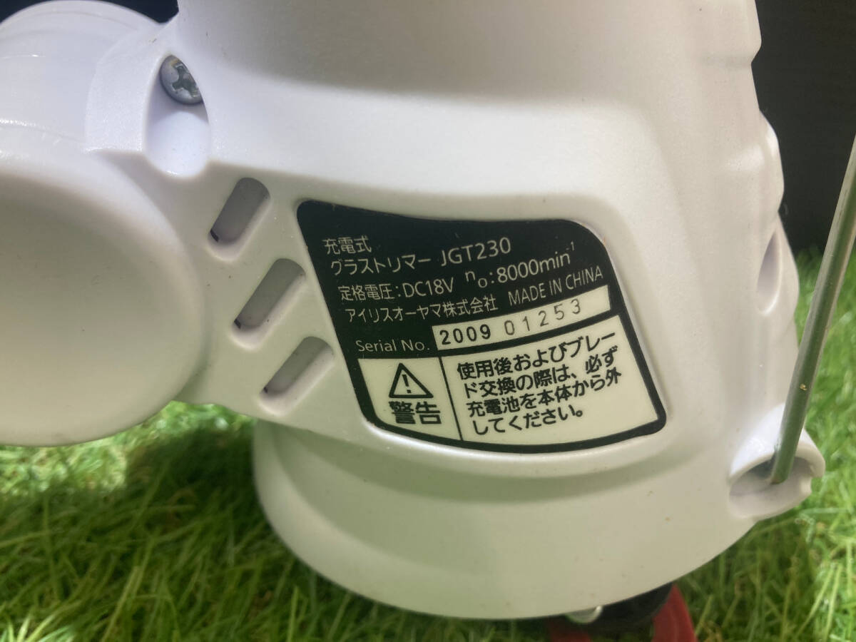 j6【中古品】★アイリスオーヤマ 充電式草刈り機 18V アイリス共通バッテリ・充電器付き グラストリマー JGT230 ITT99P6PAMHI