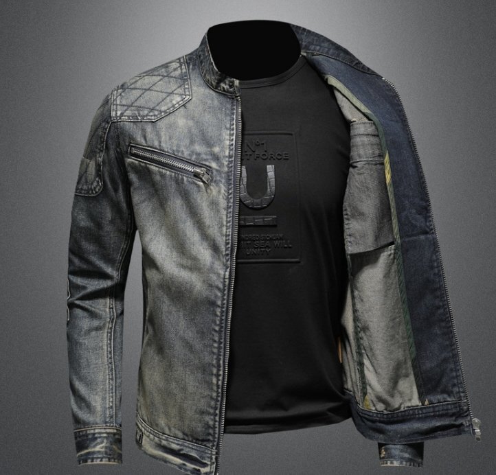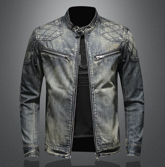 デニムジャケットメンズ春と秋の個性的なスタンドカラージッパーデニムトップス