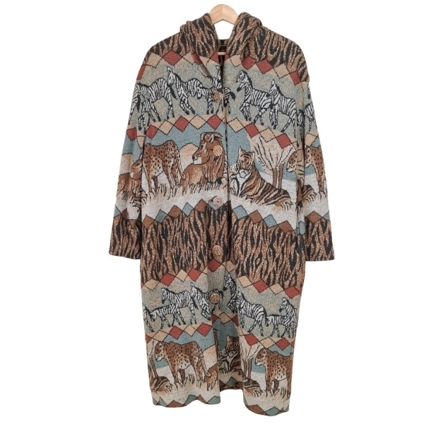 レリアン Leilian サイズ9 M - ベージュ×ブルーグリーン×マルチ レディース 長袖/アニマル柄/裏地豹柄/冬 コート