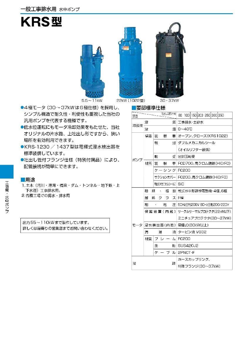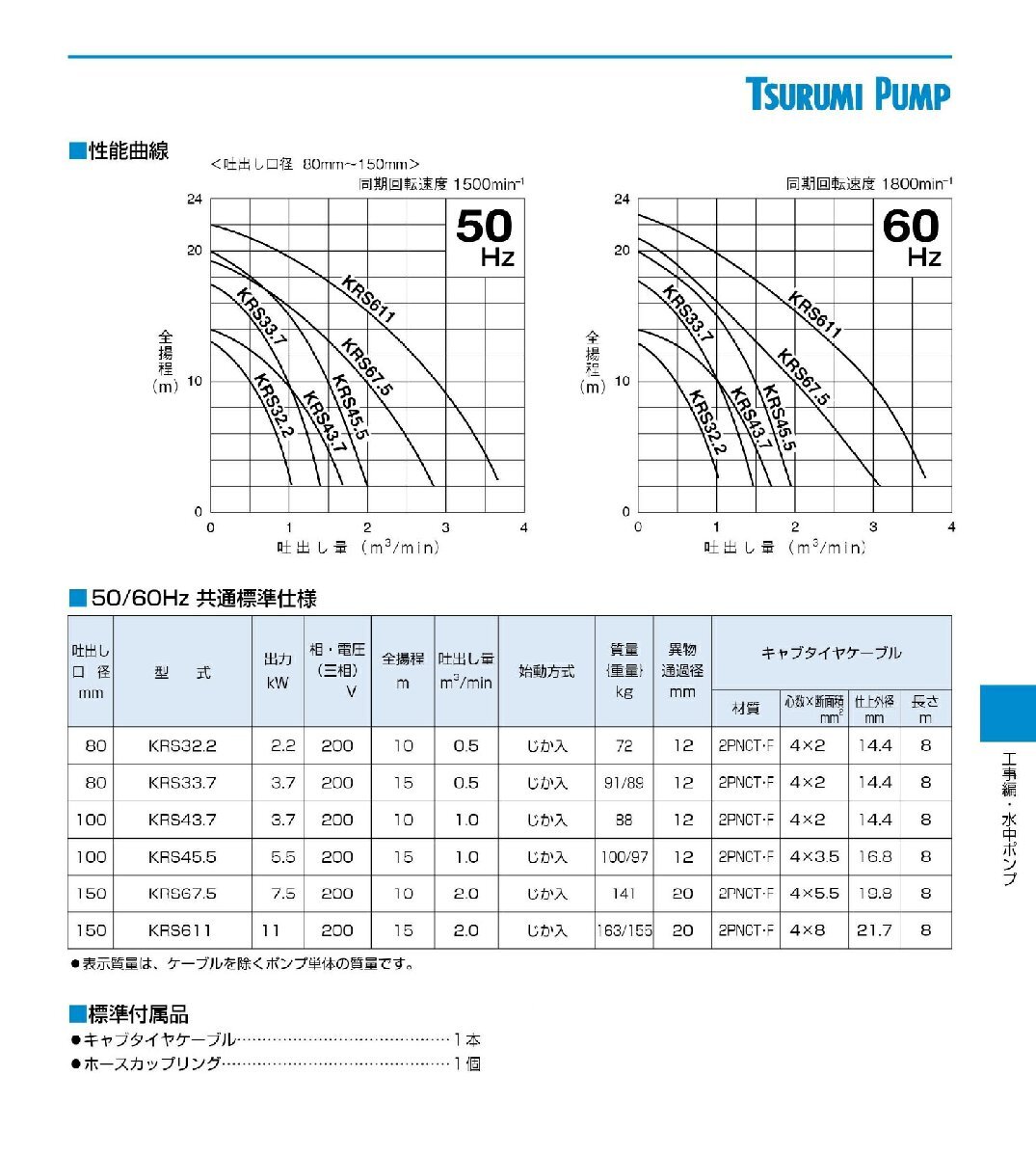 鶴見製作所 ツルミポンプ KRS32.2 60Hz 西日本用 一般工事排水用 水中ポンプ KRS型 口径80mm 出力2.2kW 水中ポンプ ※こちらの商品は、「代金引換」支払を ご利用いただけません。