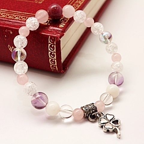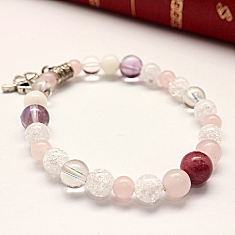 商品名 | ラブシリカ クラック水晶 ローズクォーツ ムーンストーン アメジスト デザインブレスレット |