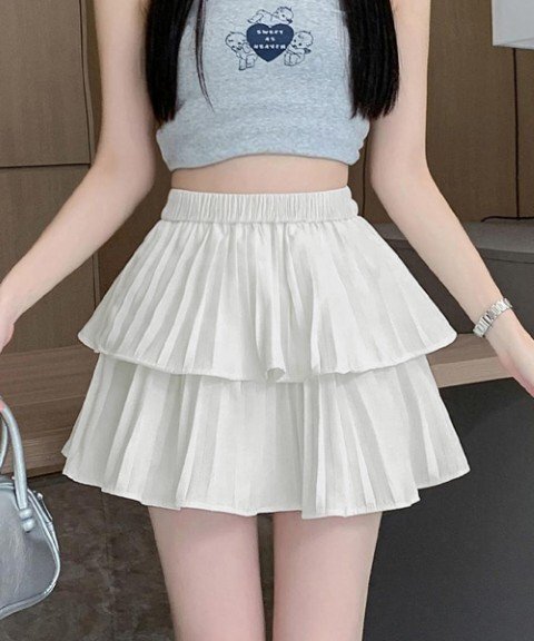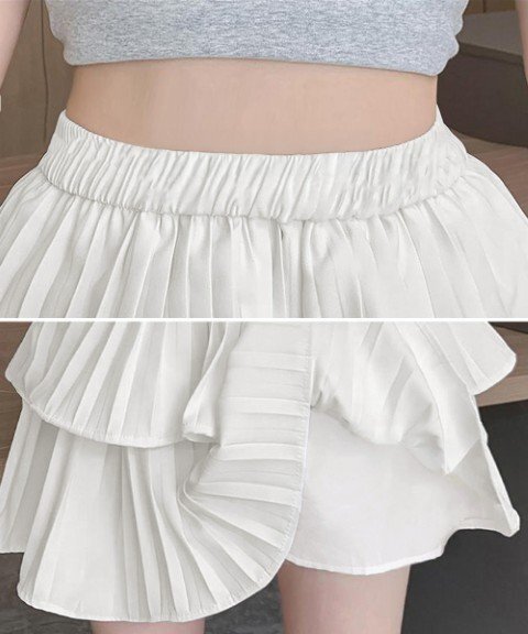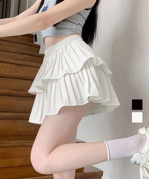 ティアードプリーツのフレアが魅力の、ガーリーな雰囲気漂うミニスカートです。