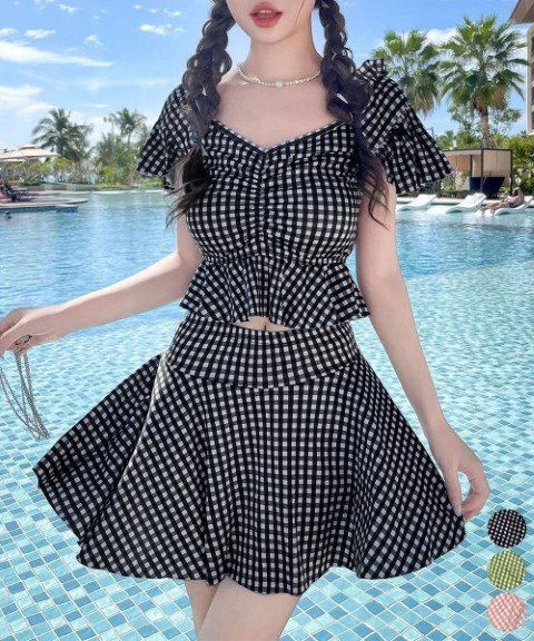 ガーリーなチェック柄が特徴のセパレートタイプのスイムウェアです。