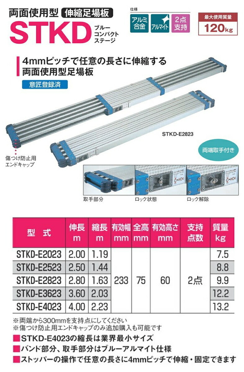 ピカ コーポレイション 両面使用型伸縮足場板 STKD-E2523〔STKD-D2523 後継品〕 ※こちらの商品は、「代金引換」支払を ご利用いただけません。