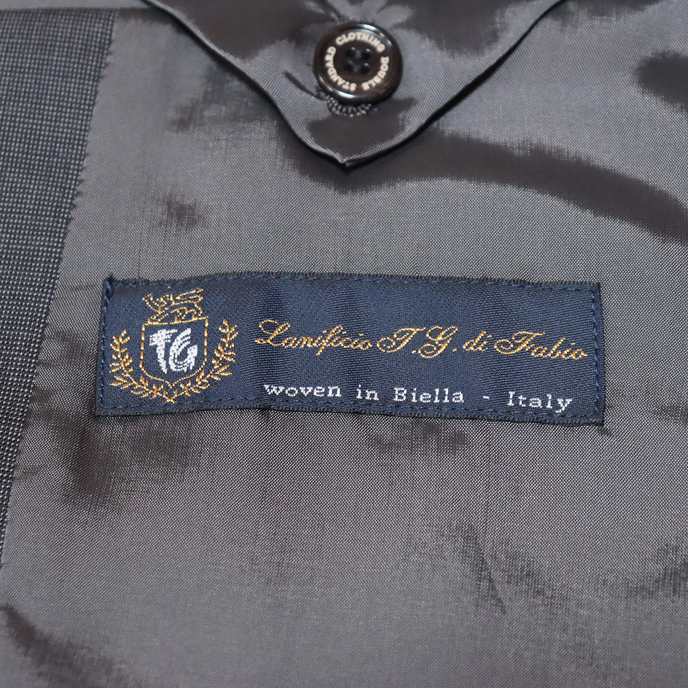 イタリア・ビエラの名門、Lanificio T.G. di Fabio社製のウール100%生地を使用したスーツ。しなやかなハリとサラッとした肌触りを併せ持ち、通年を通して快適にご着用いただけるのが魅力です。