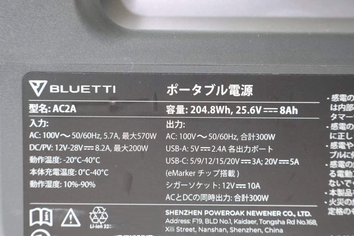 A0206 L BLUETTI ブルーティ 小型ポータブル電源 AC2A 204.8Wh, 25.6V 8Ah
