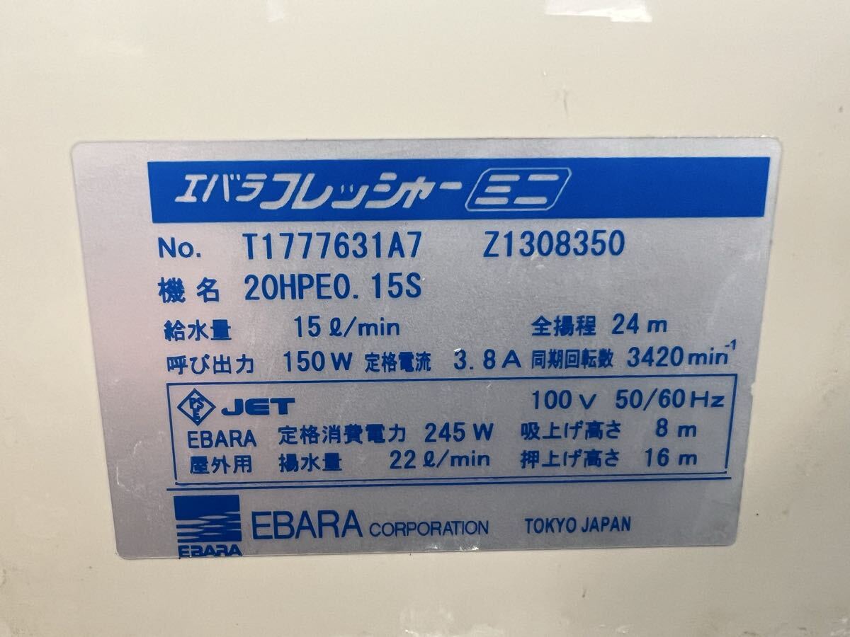 【10】井戸ポンプ 荏原 エバラ フレッシャーミニ 20HPE0.15S EBARA 浅井戸 動作未確認 現状品 ジャンク
