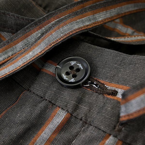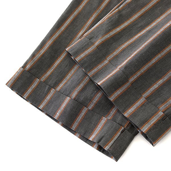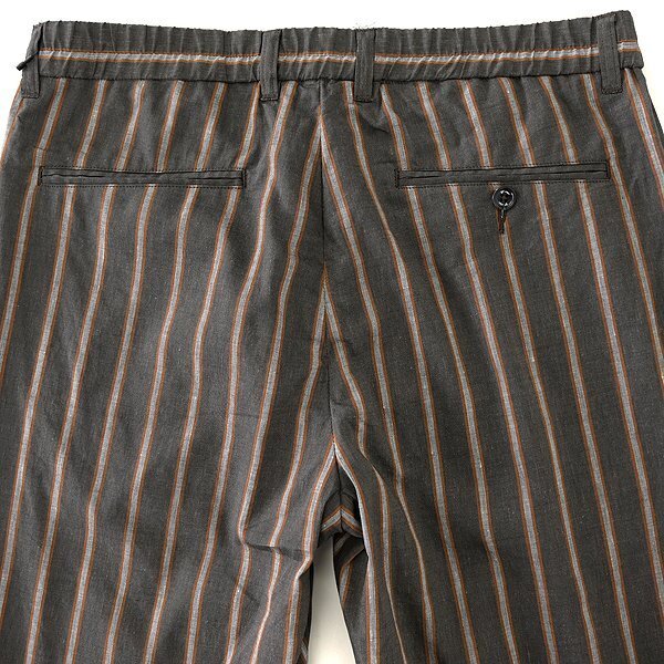 清涼感あるコットン×リネンのイージーパンツです。 綿麻素材のひんやりとした肌触りや、薄手で通気性の高い平織り組織により、熱や湿気がこもりにくく爽やかな穿き心地に仕上がっています。 表情あるシャンブレー配色の生地に、インパクトのあるストライプ柄を施した、大人の休日カジュアルやリゾートなどにぴったりなアイテム。 シルエットは適度にゆとりあるテーパードシルエットで、ウエストストレッチ機能よる快適なウエストフィットと、ドローコード&ベルトループの両搭載により、ベルトなしのリラックススタイルからベルトをしてのドレッシーなスタイルまでカバーできます。 また、ダブルカフ仕上げになっているので裾の納まりが良く、サンダルやスニーカーとの相性も抜群です。 【デザイン】 ・1タック ・ジッパーフライ ・テーパードシルエット ・ウエストはゴムとドローコード入り ・裾はダブル仕上げ |