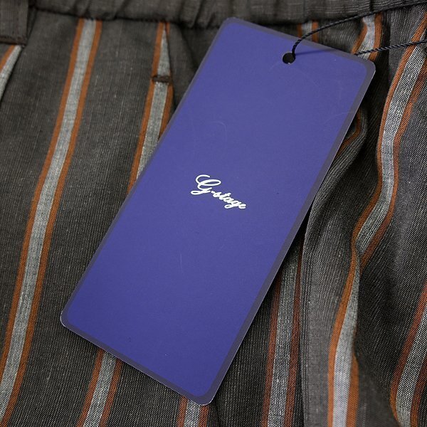 新品 未使用 紙タグあり 46サイズ(Mサイズ相当・画像は別サイズで撮影) ※商品に記載されたサイズ・寸法です※ ウエスト実寸82~86cm(内回り1周・ゴム入り) 股上26cm 股下69.5cm 裾幅18cm 腿幅28cm(股下10cm部分) 本体:綿54% 麻46% ブラウン系 |
