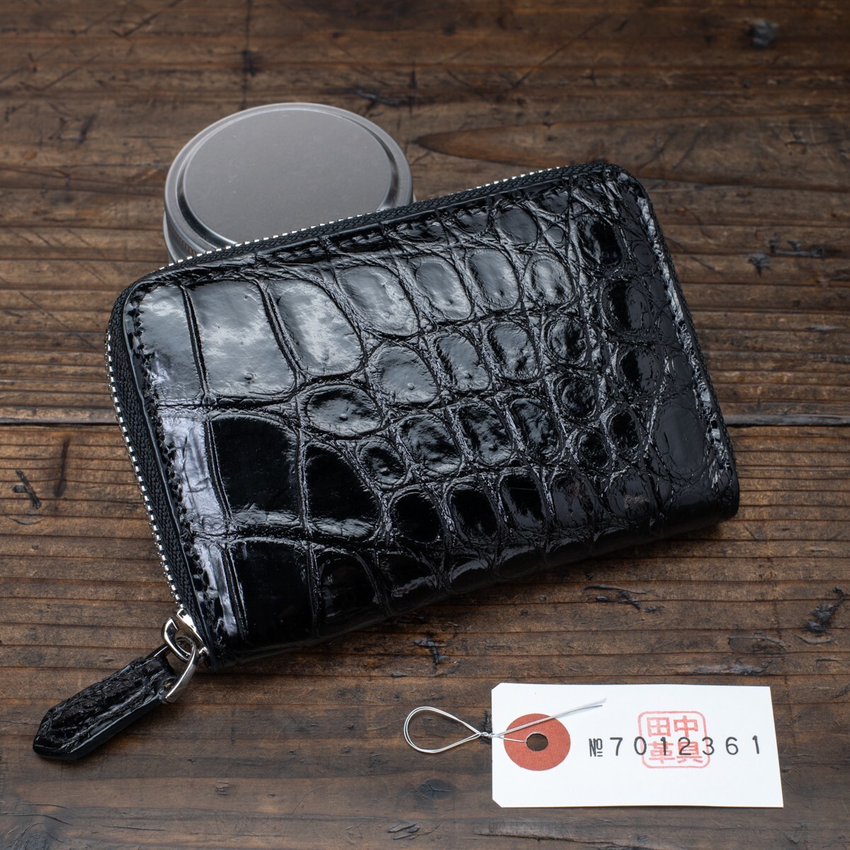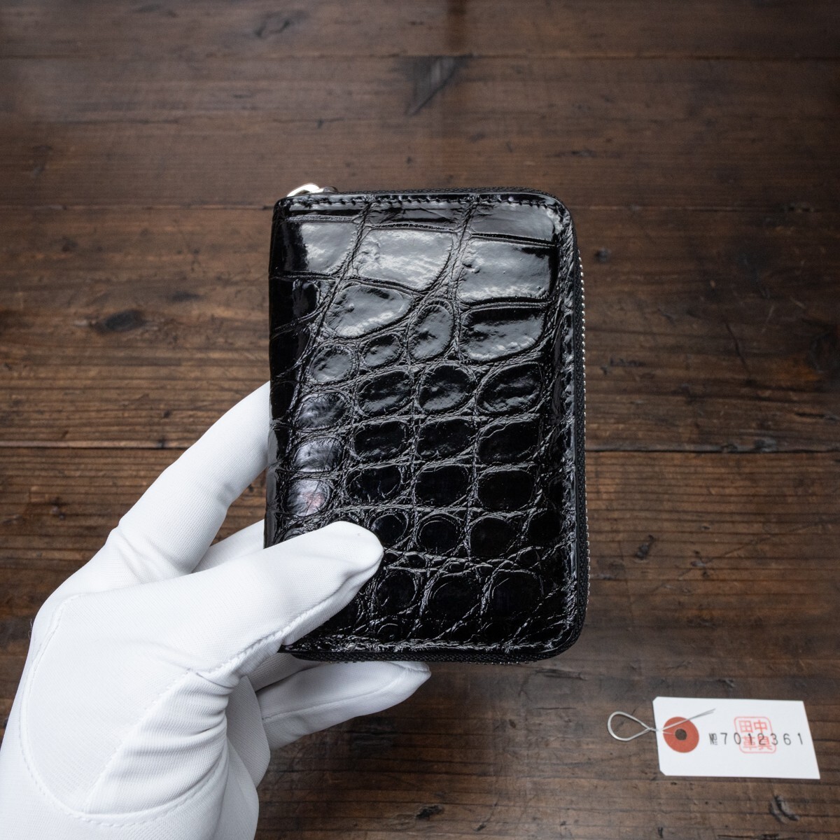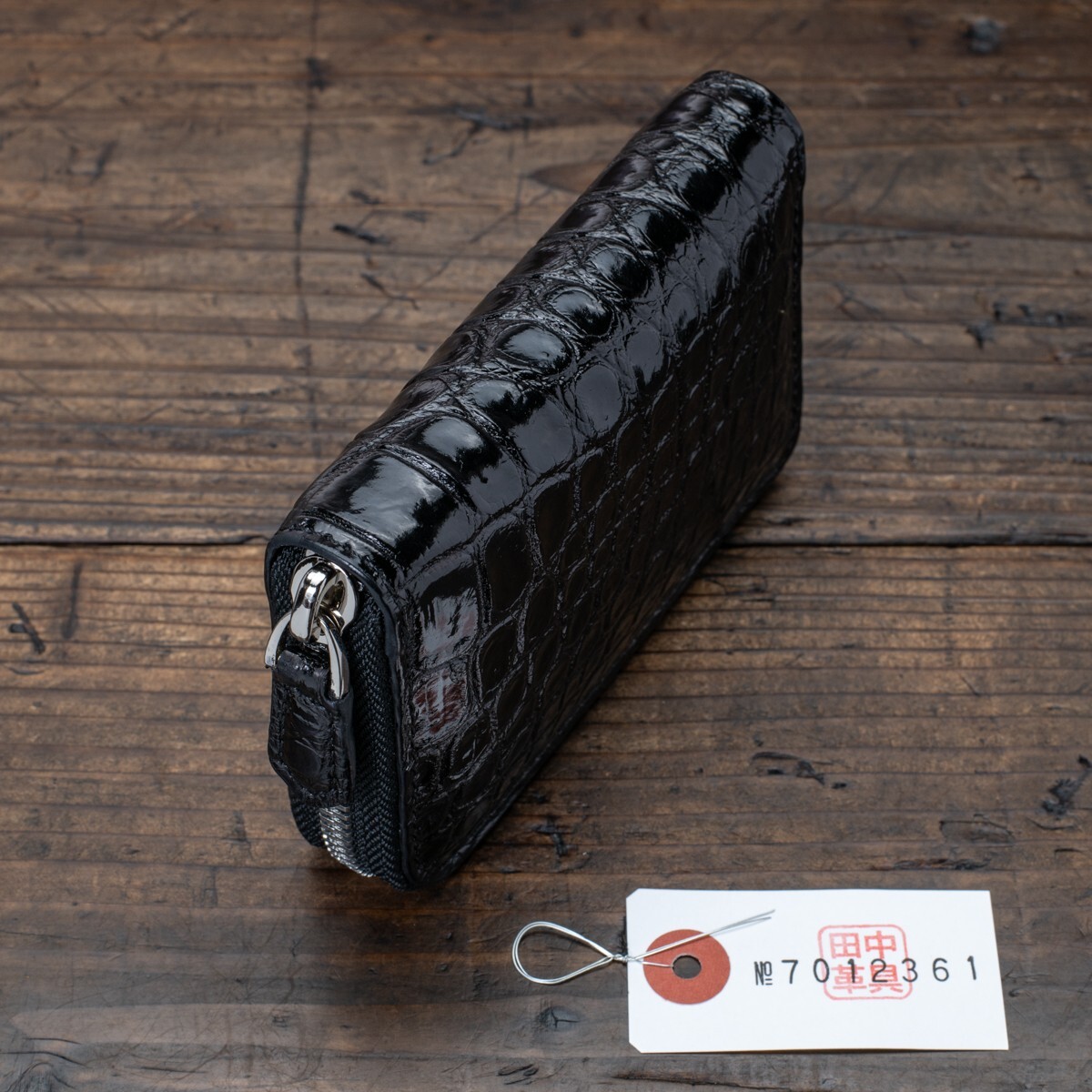 クロコダイル【一枚革】メンズ ラウンドファスナー わに 鰐 長財布 新品 未使用 送料無料 1円 黒 ブラック クロコミドル 実物撮影 田中革具